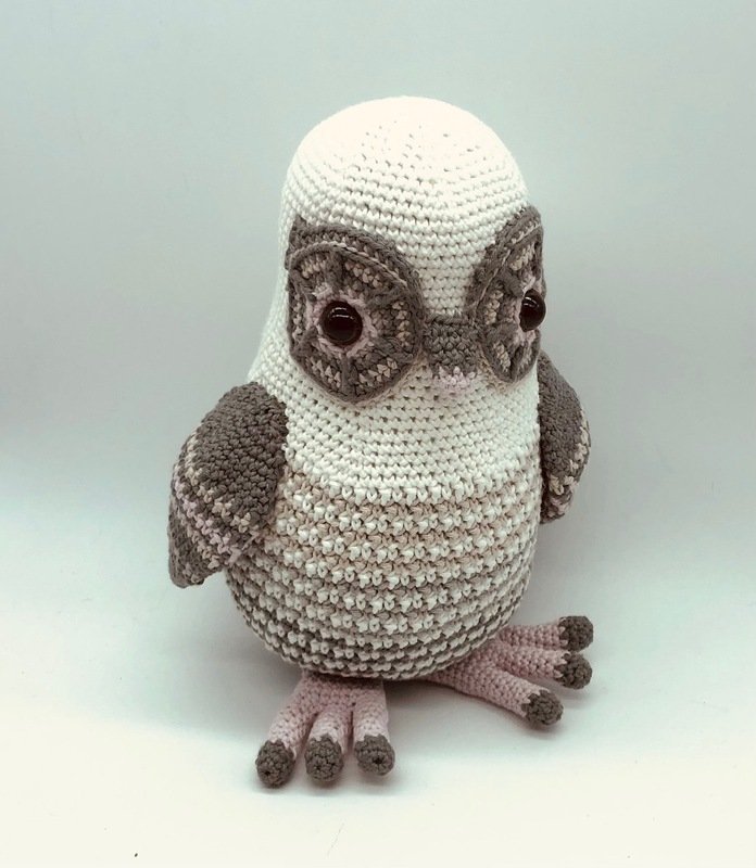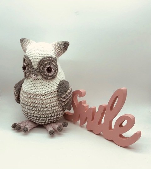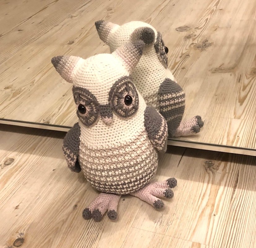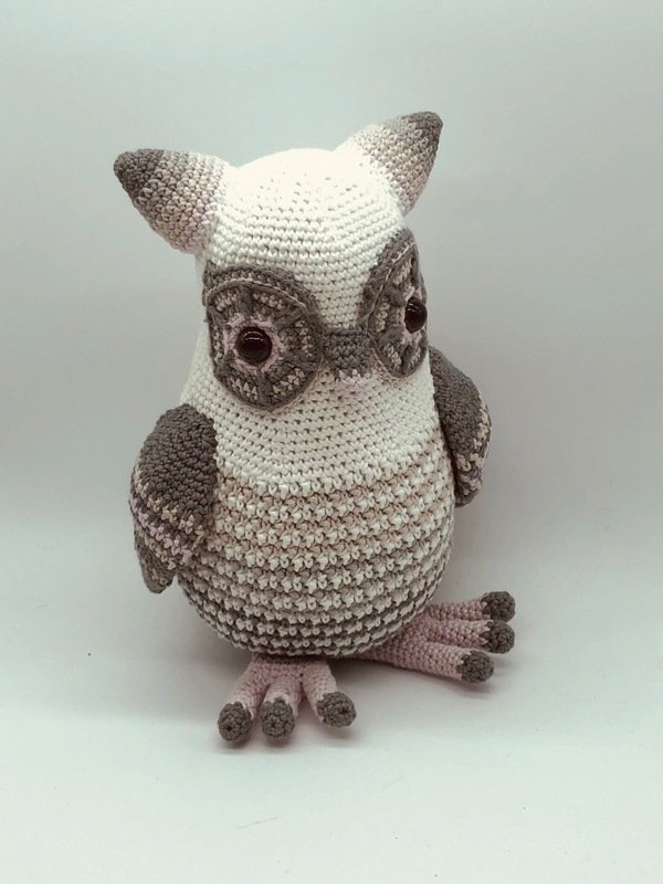 Das ist Wilhelmine, die elegante Eule. Die Augen sind ein wenig aufwändig, also solltest du schon ein wenig Häkelerfahrung mitbringen, auch wenn ich sie sehr detailliert beschrieben habe. Wilhelmine sieht übrigens mit und ohne Hörner schick aus, entscheide selbst.