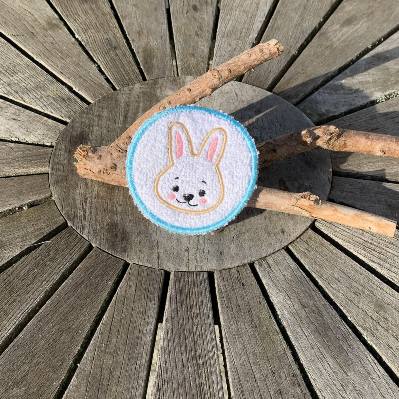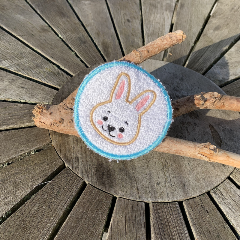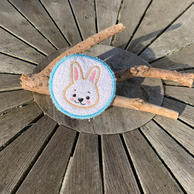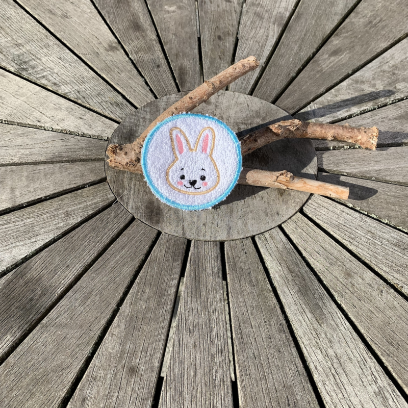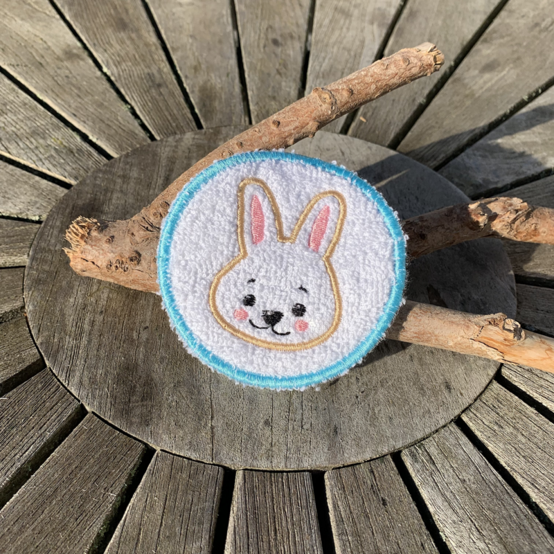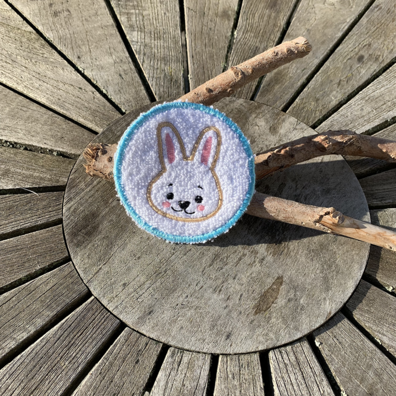 Hasen-WaschPad 2 rund als ITH-Datei d.h. er wird komplett in der Stickmaschine hergestellt.