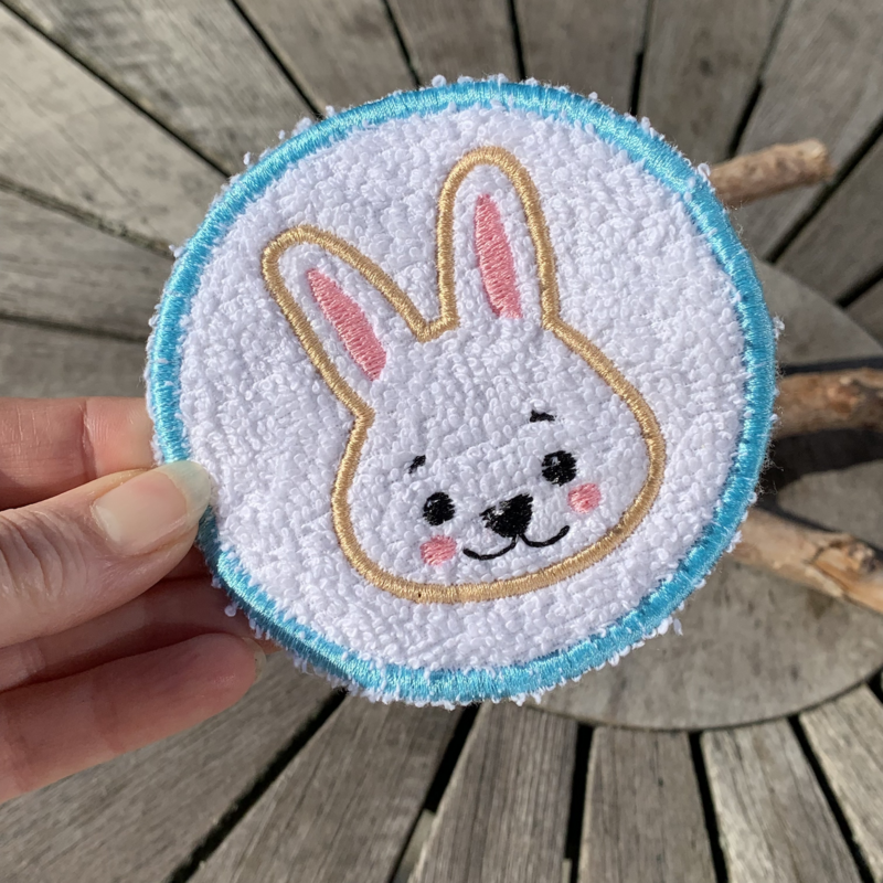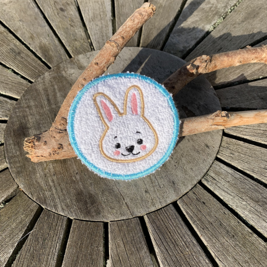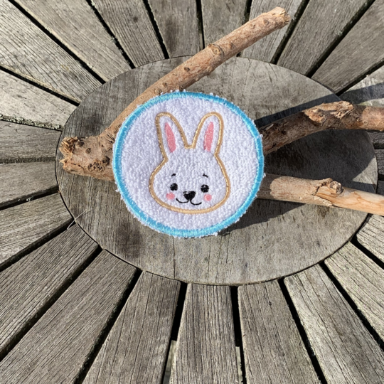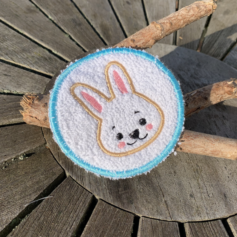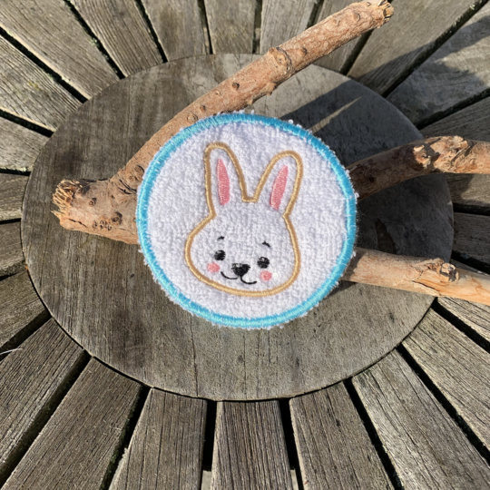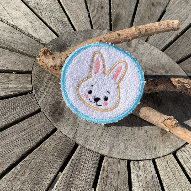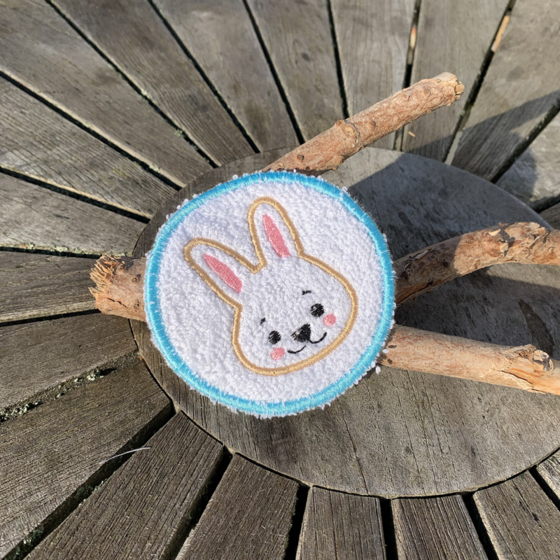 Hasen-WaschPad 2 rund als ITH-Datei d.h. er wird komplett in der Stickmaschine hergestellt.