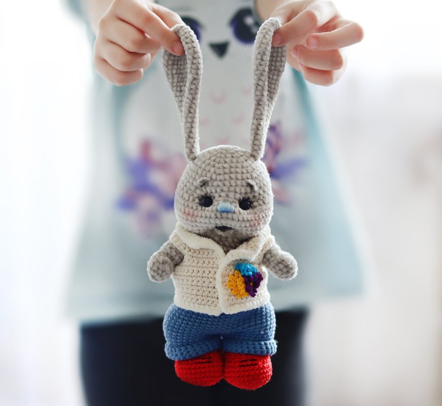 Mit dieser Anleitung kann man den Hasen in verschiedenen Größen häkeln. Je nach Garnstärke wird der kleiner oder größer.