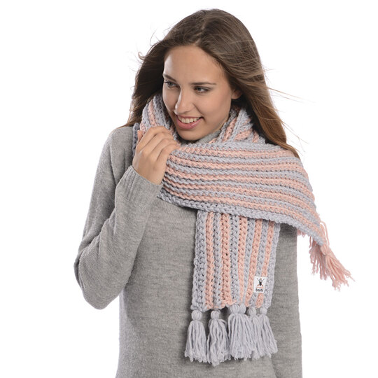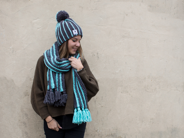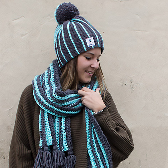 Die Mütze Asago und der Schal Chiryu ergänzen sich gegenseitig perfekt in ihrem Streifenlook. beide sind auch für Häkel-Neulinge einfach zu erarbeiten und das Set ergänzt deine Winter-Gaderobe perfekt