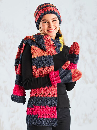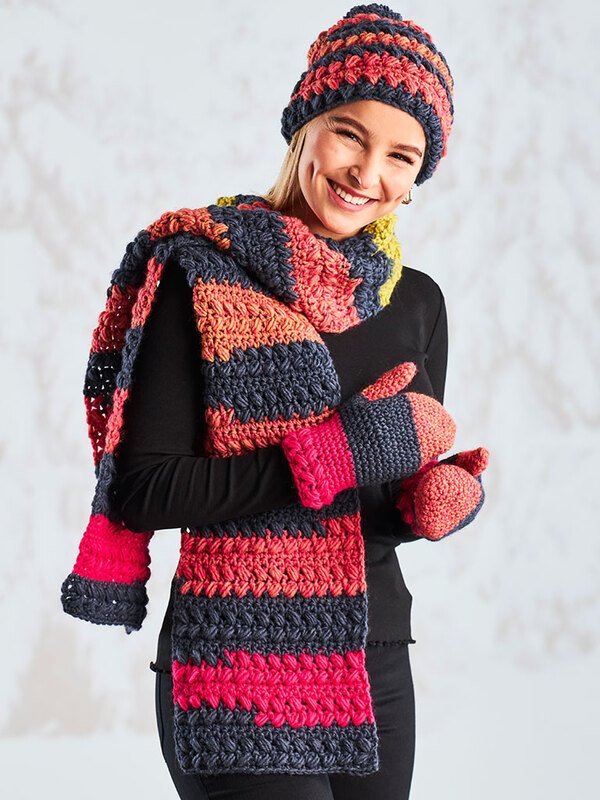 Was immer total schick und stimmig aussieht, sind Sets. Es ist so schön wenn alles aufenander abgestimmt ist. So wie dieses hübsche Set, bestehend aus einem Schal, einer Mütze und schönen warmen Fäustlingen.