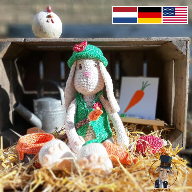 Mit diesem PDF-Muster können Sie Harrison selbst häkeln! Diese 12-seitige PDF enthält detaillierte Häkelanleitungen, die mit Fotos illustriert werden, einschließlich klarer Informationen über die verwendeten Materialien und Abkürzungen. Er ist 50cm groß.