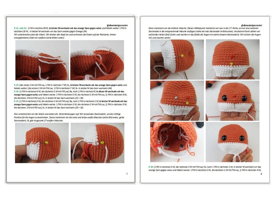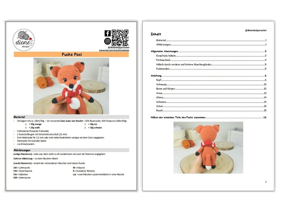 Detaillierte PDF-Anweisungen führen Sie Schritt für Schritt durch die Herstellung des Fuchses. Die Anleitung ist sehr detailliert mit mehr als 60 Bildern geschrieben.