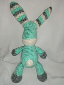 Wenn Sie Wolle für Nadelstärke 2,5 (Sockenwolle) verwenden, wird Ihr Häschen mit Ohren ca. 30 cm hoch.