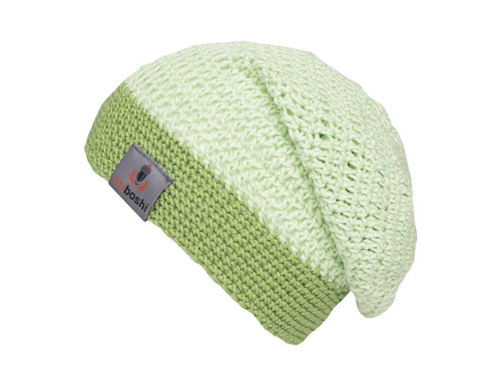 Die Ballonmütze Suwa wird im Wechsel mit halben Stäbchen und einfachen Stäbchen in Runden gehäkelt. Für den farbig abgesetzten Bund werden feste Maschen als Maschenart verwendet.
