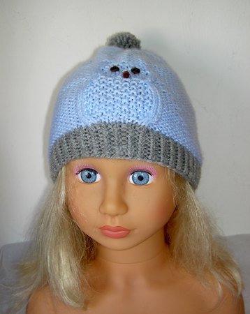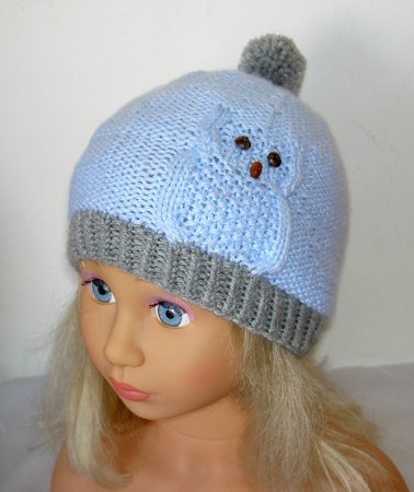 Strickanleitung Kinder-Mütze mit Eulenmotiv, Kopfumfang ca. 42 - 48 cm