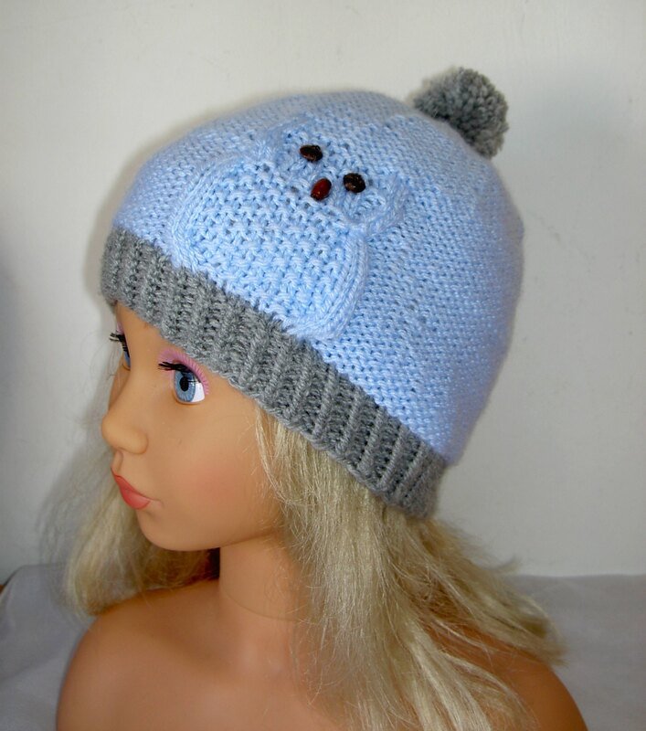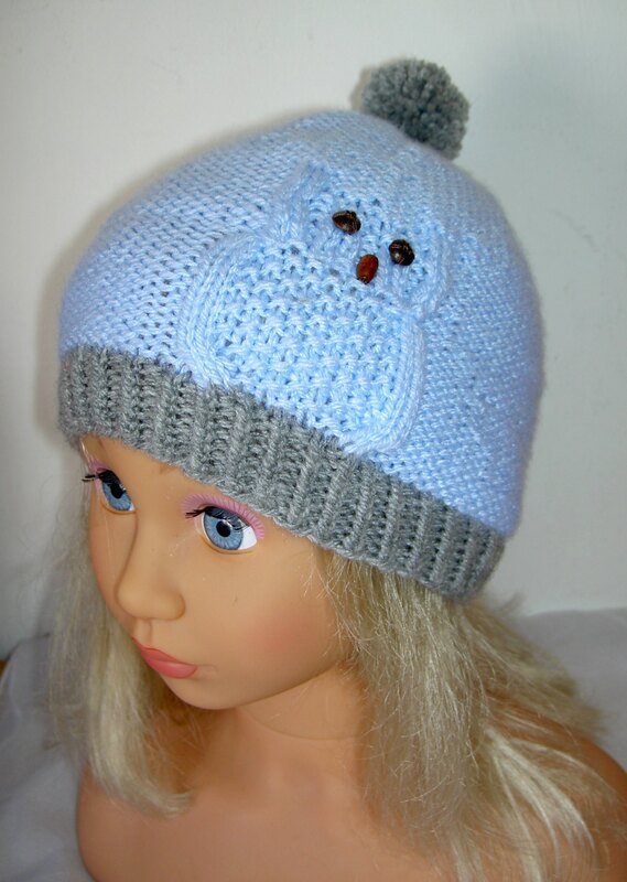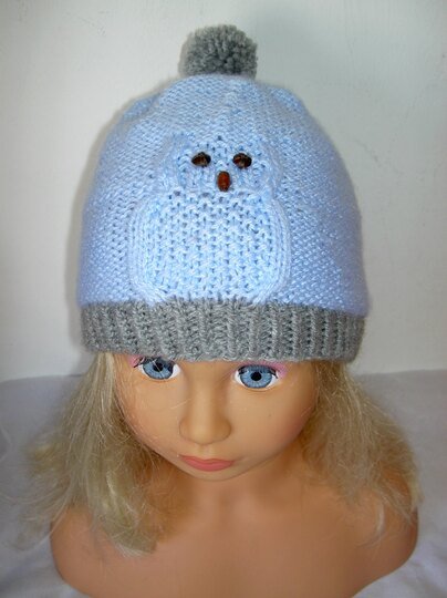 Strickanleitung Kinder-Mütze mit Eulenmotiv, Kopfumfang ca. 42 - 48 cm