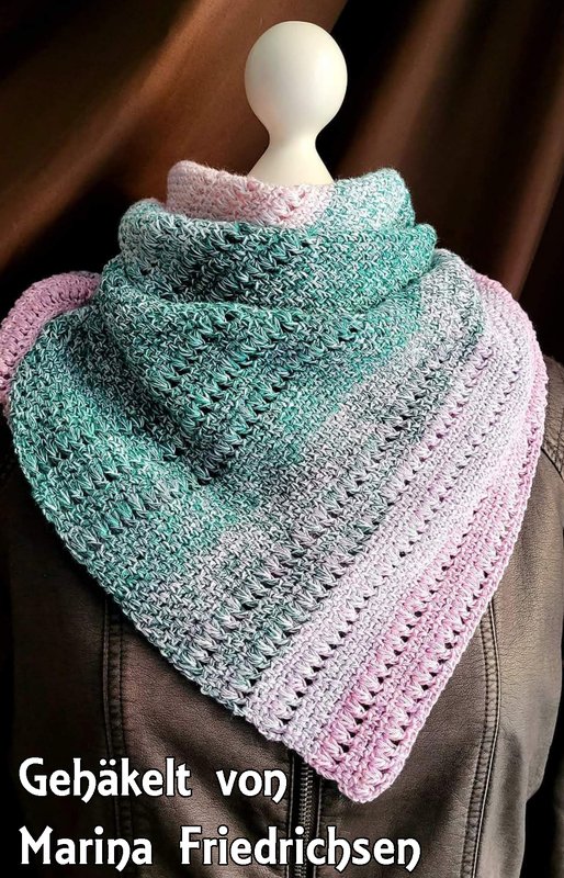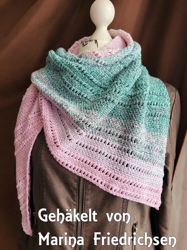 Da das Tuch in beliebiger Größe gehäkelt werden kann, verzichte ich hier auf die Angabe von Maßen.