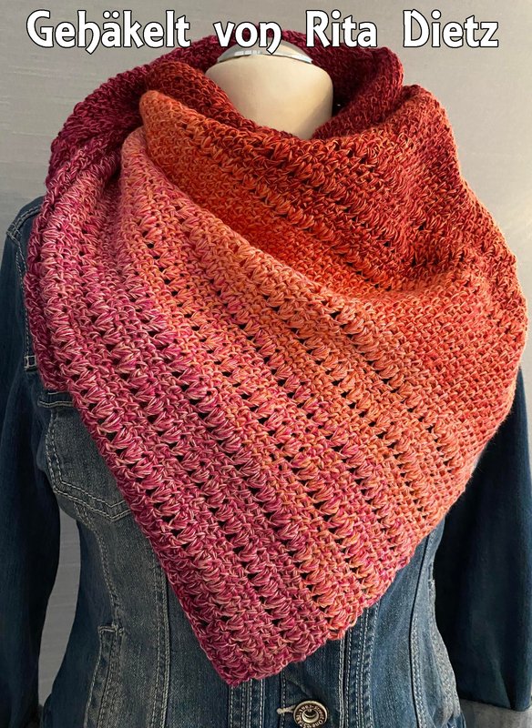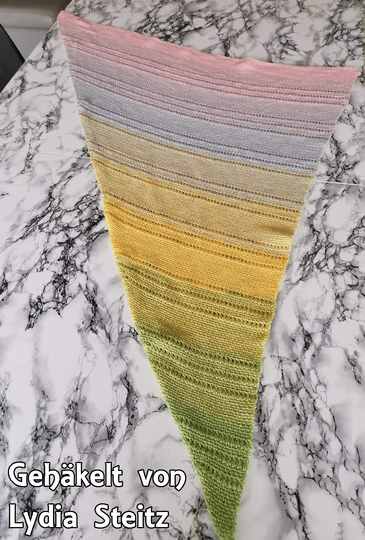 Da das Tuch in beliebiger Größe gehäkelt werden kann, verzichte ich hier auf die Angabe von Maßen.