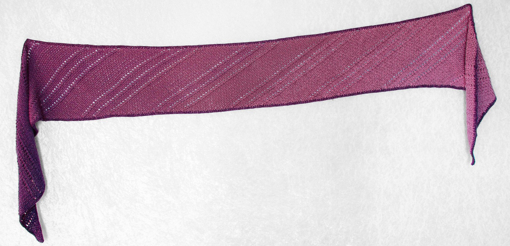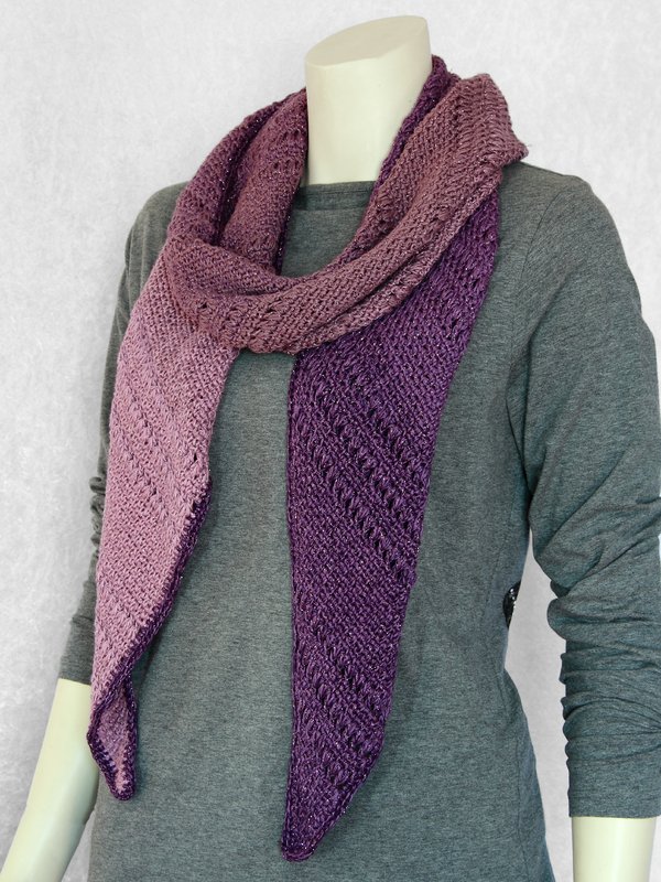Der Aufbau ist besonders gut für Wolle mit Farbverläufen geeignet, ebenso sind sowohl Tuch als auch Schal durch die Muster auch "männertauglich".