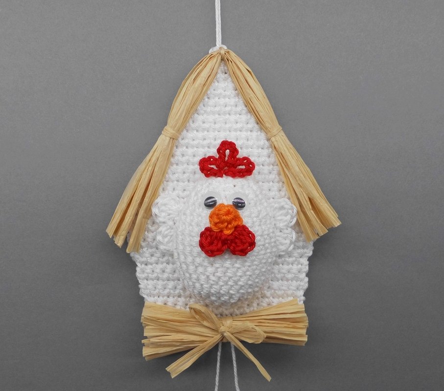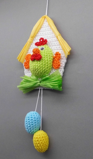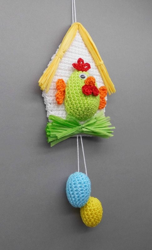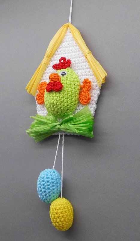 Der Dekohänger Hühner-Haus lässt sich, auch von Anfängern mit etwas Übung, sehr einfach aus Wollresten häkeln - in fröhlichen, bunten Farben für Deine Osterdeko oder in Weiß und Beige als hübsche Ganzjahres-Dekoration für Türen, Fenster und Wände.