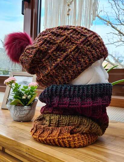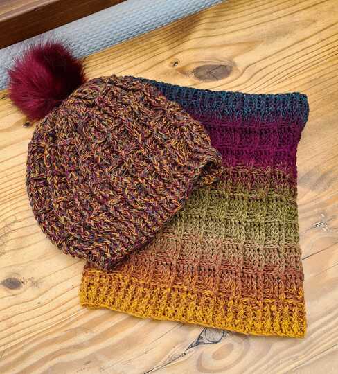 Für den Loop benötigst du ca. 800 - 1000 m/LL 4 fädiges Farbverlaufsgarn zum Beispiel aus Modalmix oder mit Merino. Für eine Halssocke reichen bereits 500 m/LL. Die genau Menge hängt davon ab wie lang und wie breit du deinen Loop häkeln möchtest.