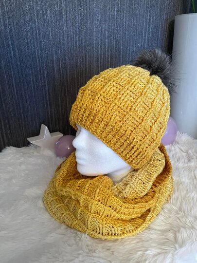 Du benötigst für die Mütze ca. 250 bis 300 m/LL 6-fädigen Mützenbobbel z. B. aus Modalmix oder 120 bis 150 g Mützenwolle, Garnstärke ca. 110 m/50 g.
