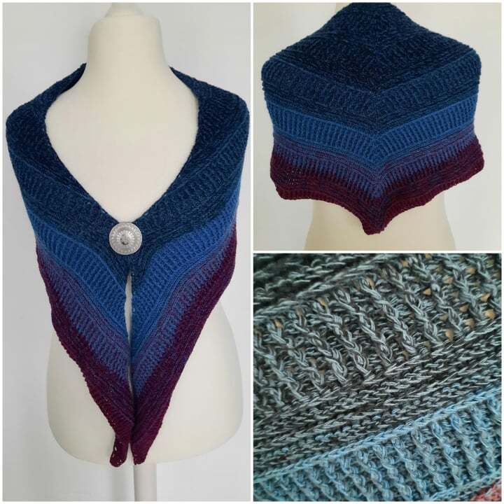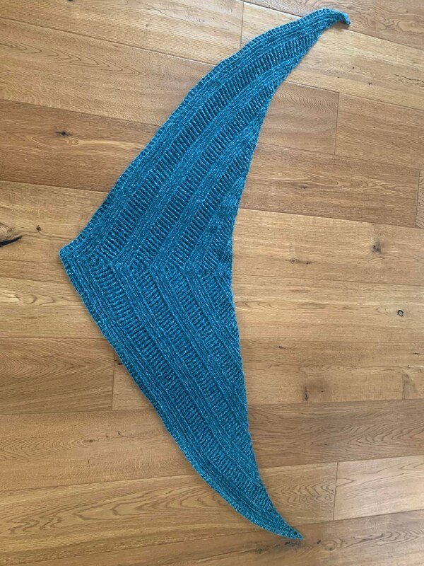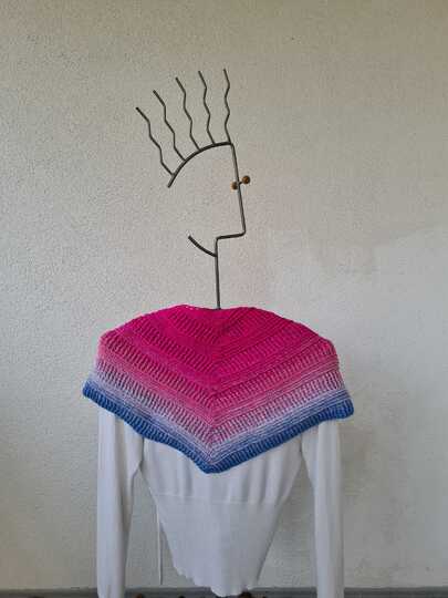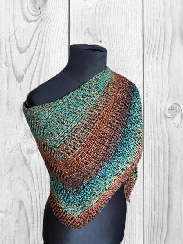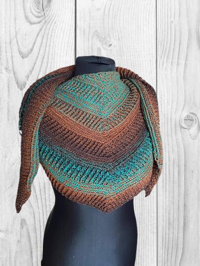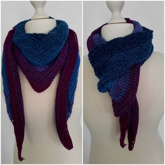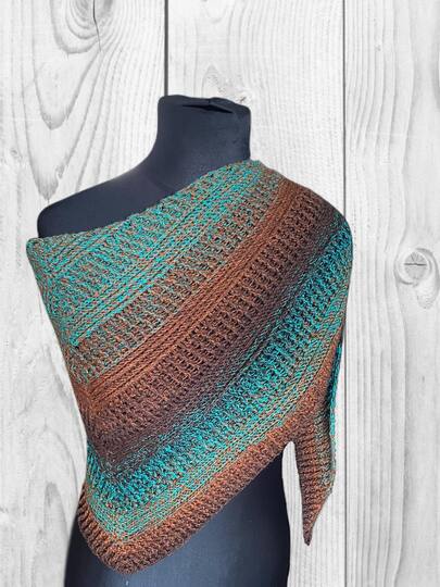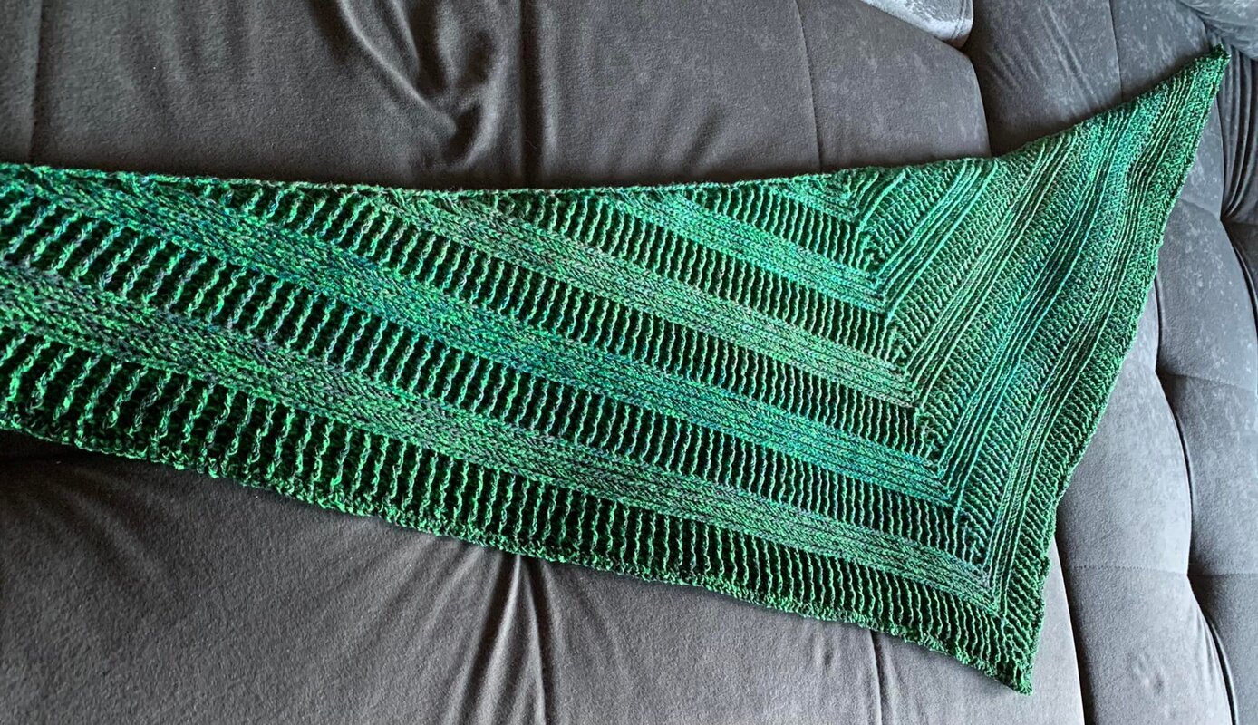 Ich habe 1000/4 aus dem kleinen Bobbelhaus verwendet (#99) + mit Nadelstärke 3,75 gehäkelt. Mein Tuch ist ca 204x42cm groß geworden.