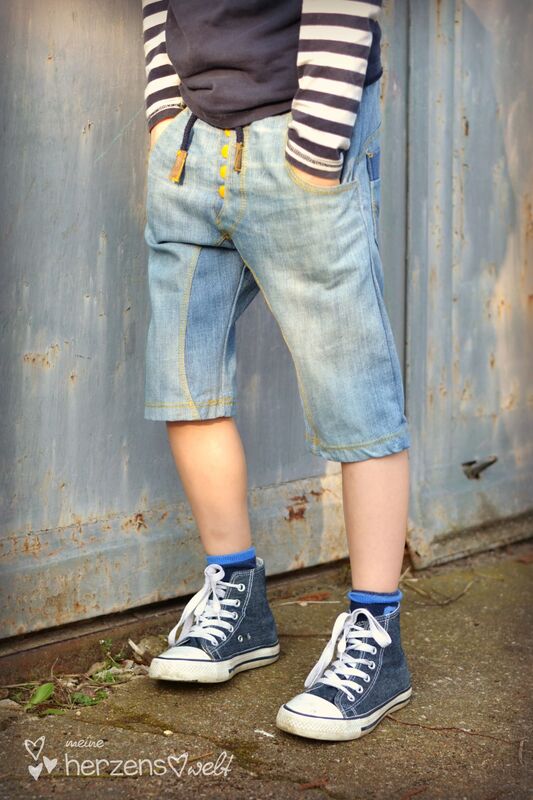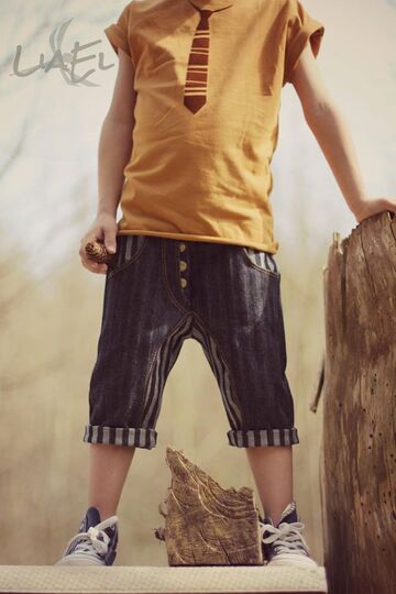 Deine Sverre ist eine lässige Hose, die durch ihre Unterteilung und den leicht O-Bein-förmigen Schnitt besticht. Für den Sommer oder zum Sport kann die Hose auch in einer kurzen Länge genäht werden. Sie endet dann knapp unter dem Knie und schützt die Knie beim Toben und Bolzen. Sie ist auch eine perfekte Jogginghose.