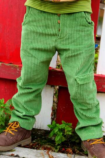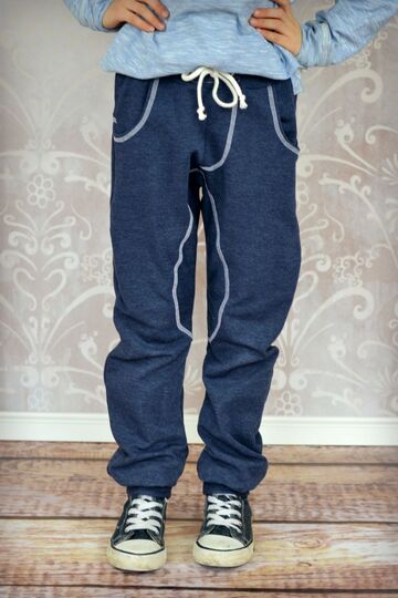 Am schönsten fällt die Hose, wenn Du sie aus etwas dickeren, dehnbaren Stoffen wie z.B. Sweat nähst. Sverre kann aber auch aus festen Stoffen, wie z.B. Jeans, Twill oder Cord genäht werden.