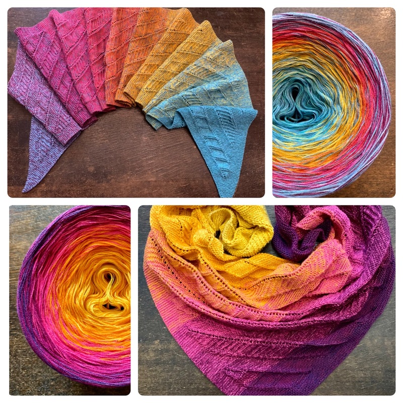 Der Zipfelschal wurde mit NS 2,5 gestrickt, der Bobbel Seasons of Colors war in 4-Fach mit 900 m LL. Die Breite des Schals ist 30 cm (das kannst du aber anpassen wie du magst) und die Länge ist 120 cm (auch das ist anpassbar).