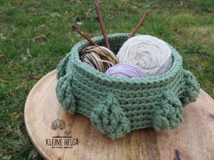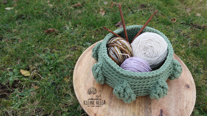 Das Körbchen wird unterschiedlich groß, je nachdem, für welches Garn und welche Nadelstärke du dich entscheidest.
