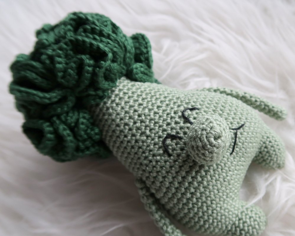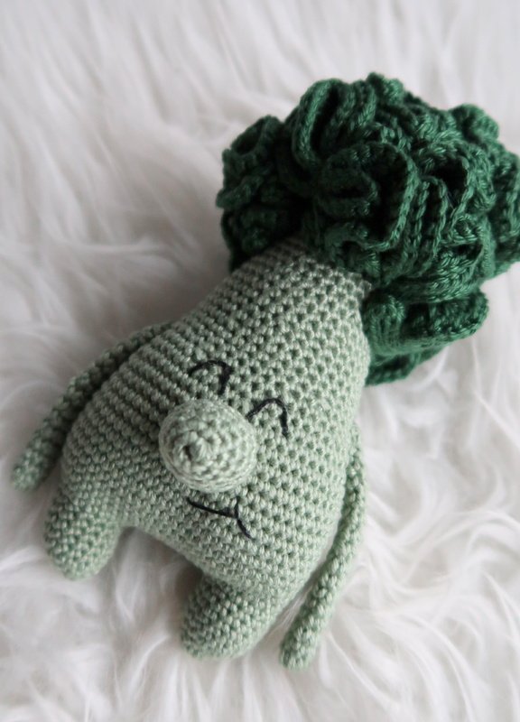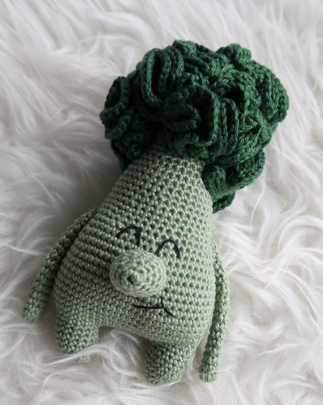 Wenn du mit Baumwolle (125m LL auf 50g) häkelst, wird dein Brokkoli ca. 16cm hoch.