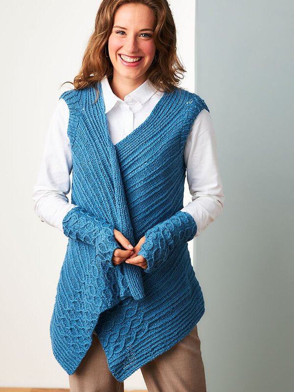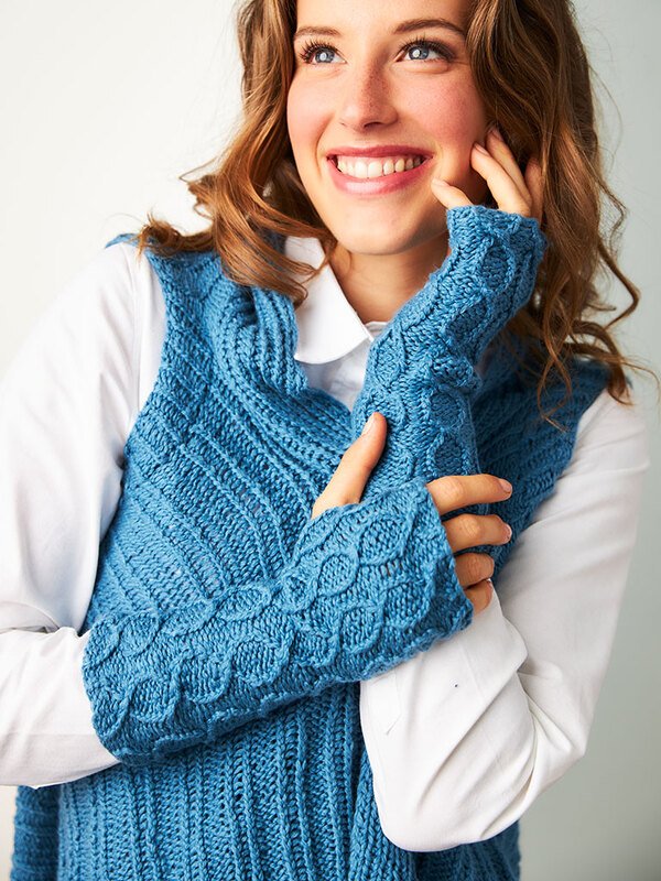 der Schnitt der Weste ist einfach gehalten so das aus Anfänger damit zurecht kommen können. Das I-Tüpfelchen ist jedoch das Garn! Es ist eine sehr edle Mischung mit einem hohen Cashmere Anteil: Woolly Hugs Cashmere+. Es hat die sanfte Flauschigkeit von Cashmere, die Kühle von der Baumwolle und das Strapazierfähige von einem kleinen Anteil Polyester. Eine solche Mischung kann man auch gut in der Maschine waschen und nichts wird verfilzen.