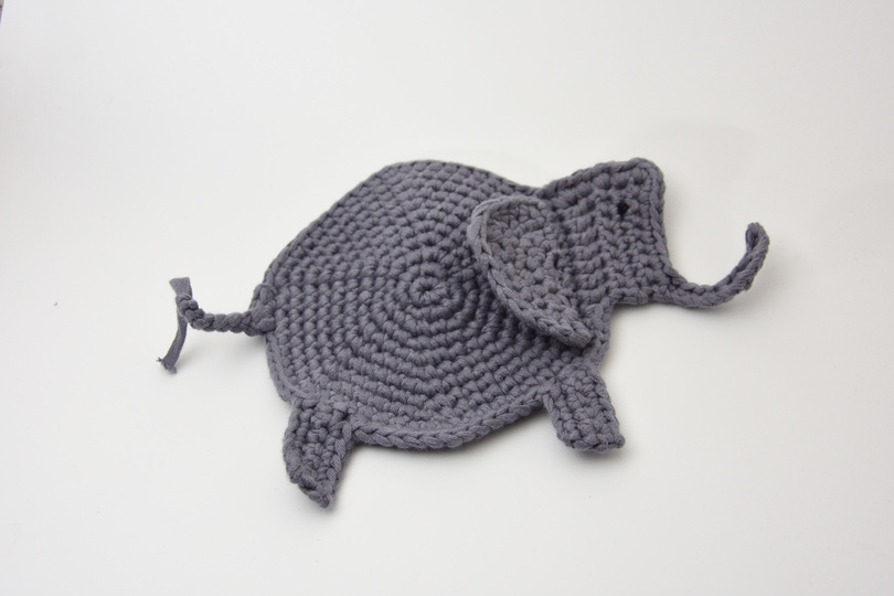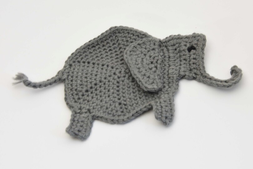 Dieser Elefant kann als Applikation verwendet werden. Oder bei grobem, dickerem Garn auch als Topflappen. Lasst eurer Fantasie freien Lauf.