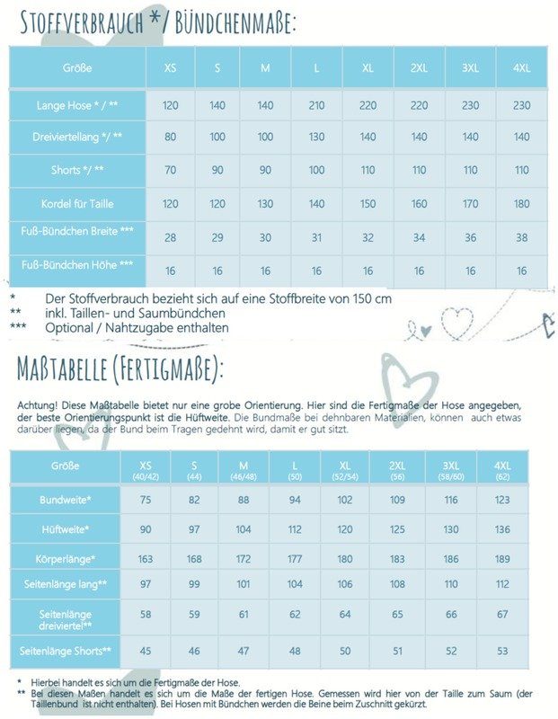 Das eBook beinhaltet in Schnittmuster für die Hose mit den Größen XS-4XL.