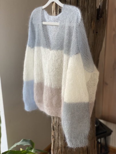 Du kannst die Maße anhand Deiner Maschenprobe bzw. verwendeten Nadelstärke auch anpassen und den Sweater dadurch größer/kleiner stricken.