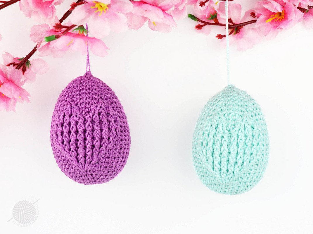 Es wird erklärt: Osterei mit dem Reliefmuster "Herz" (Boden, Mitte, Spitze), 20 Seiten, Häkelschrift, über 40 Abbildungen von Arbeitsschritten, Link zum Video mit der Erklärung von fM. im "Strickstich".