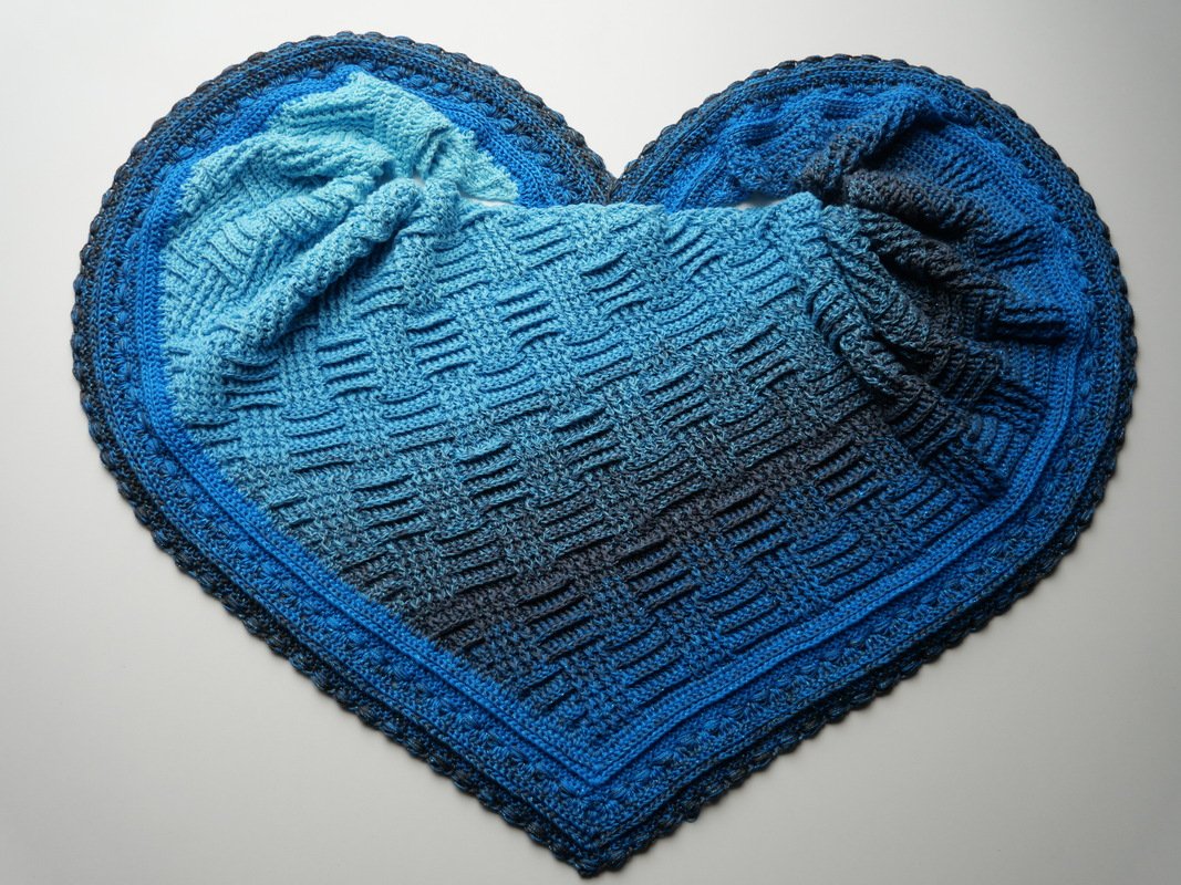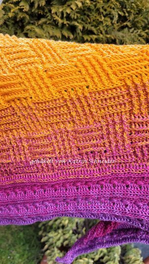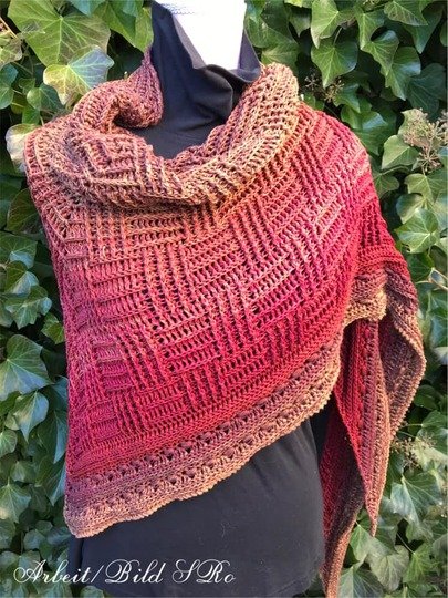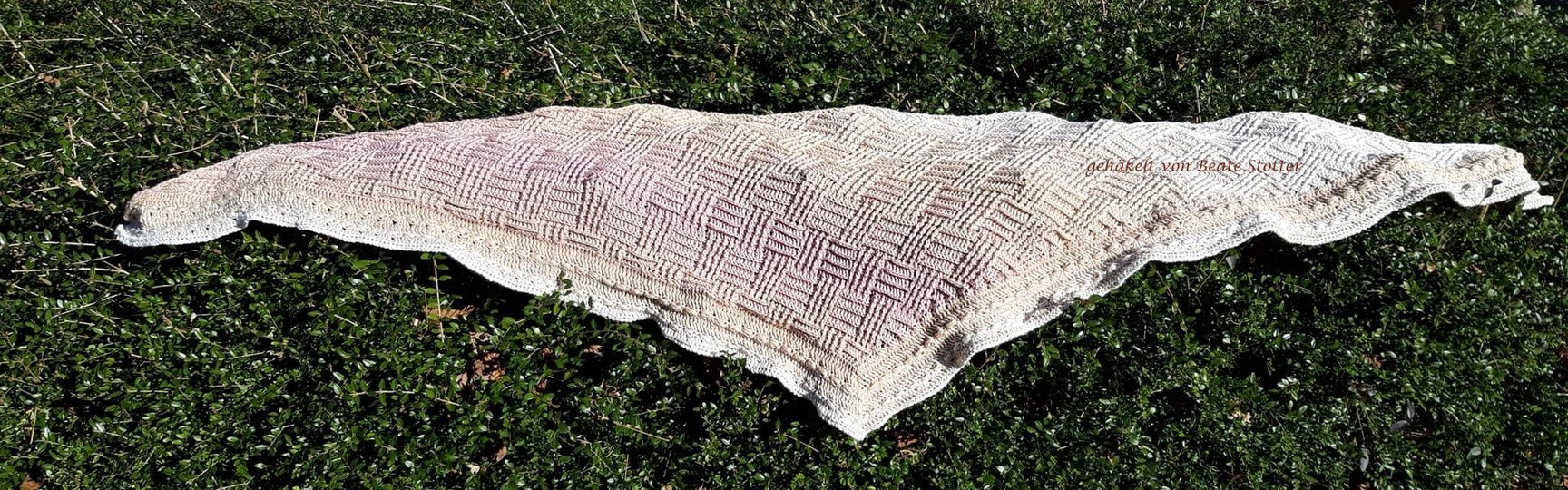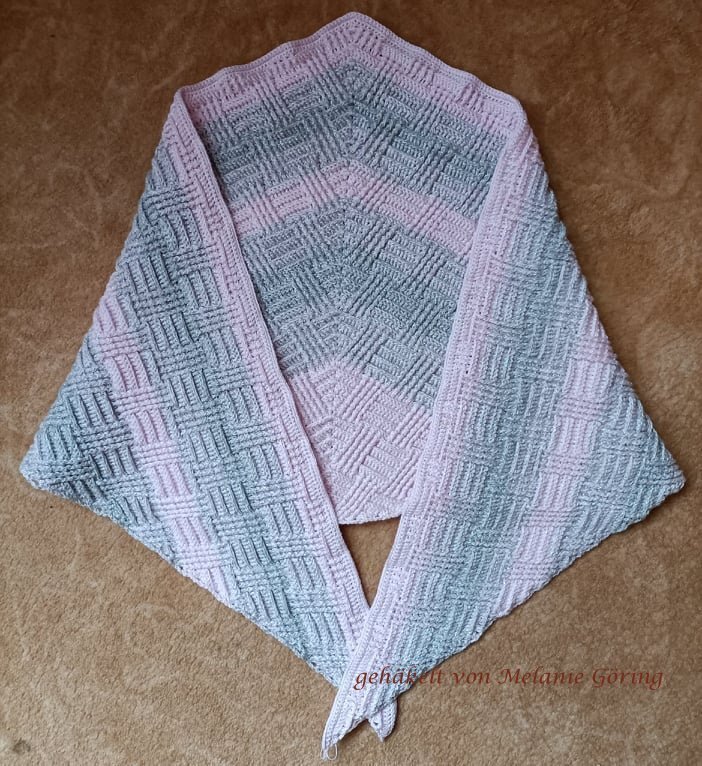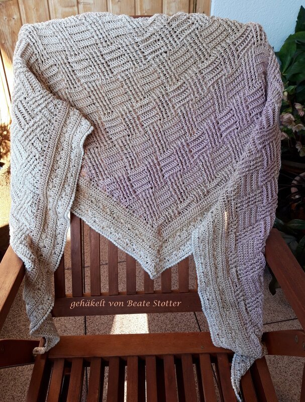 Mein Tuch "Up and Down" besteht aus Stäbchen, vorderen und hinteren Reliefstäbchen und hat dadurch einen 3D-Charakter. Das Muster ist leicht zu häkeln und ist daher fernsehtauglich.