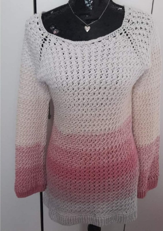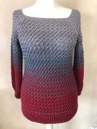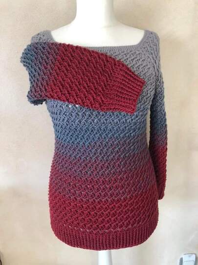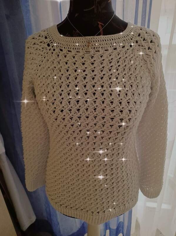 Der Pullover kann in jeder Konfektionsgröße (Erwachsene) gehäkelt werden