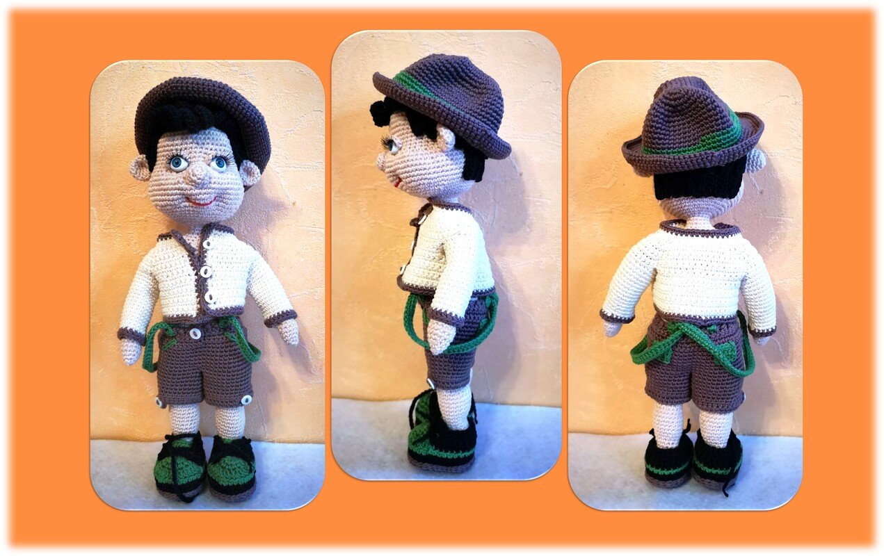 Franz´l hat nach dieser Anleitung eine Höhe von ca. 32cm von Fuß bis zum oberen Rand der Mütze und ca. 23cm mit ausgespreizten Armen.