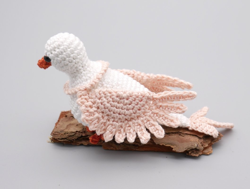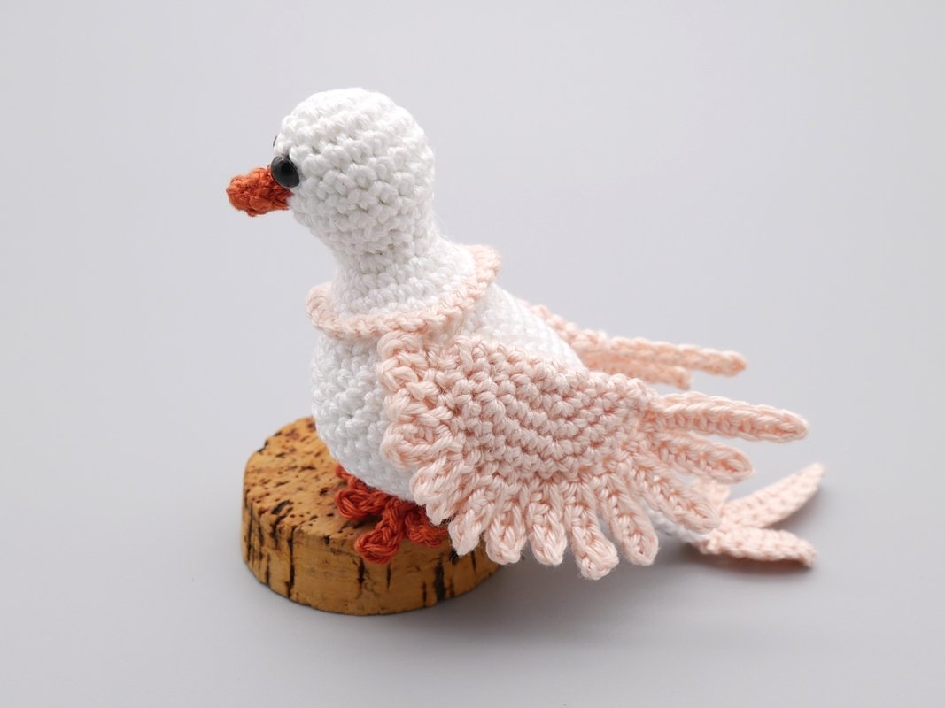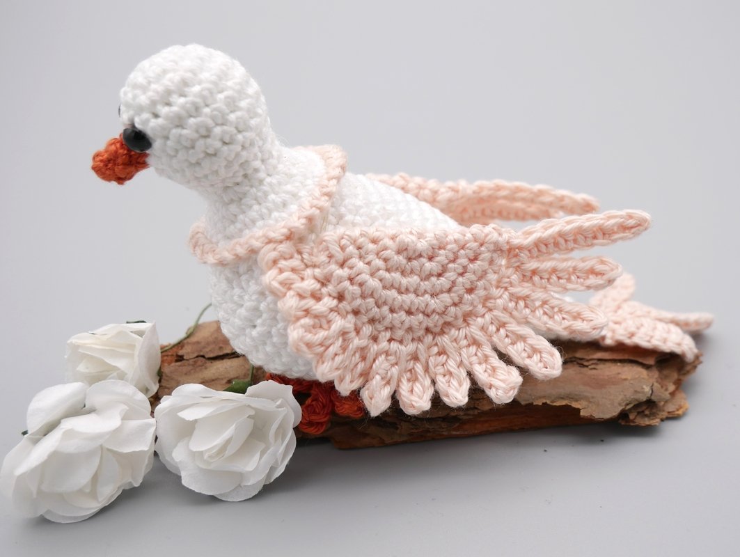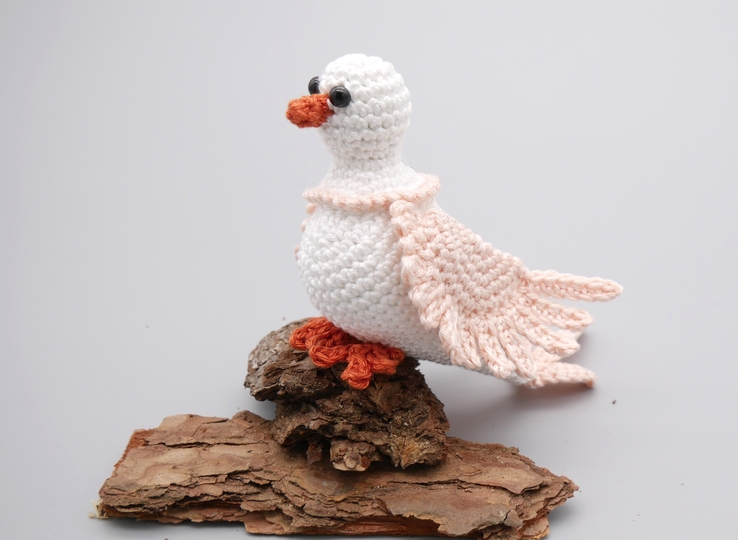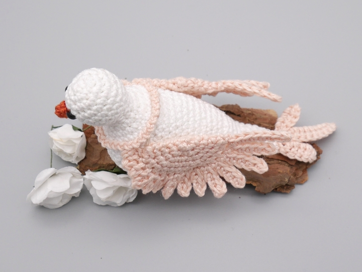 In dieser Häkelanleitung wird mit zahlreichen Bildern Schritt für Schritt erklärt wie du eine Friedenstaube - Hochzeitstaube häkeln kannst. Ob ganz weiß oder mit rose bleibt dir überlassen.