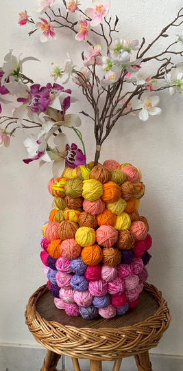 Die Knäulchenvase aus Wolleresten..die Vase ist vom Flohmarkt und nun...nach einer kurzen Behandlung.... passt die Vase viel besser zu mir!