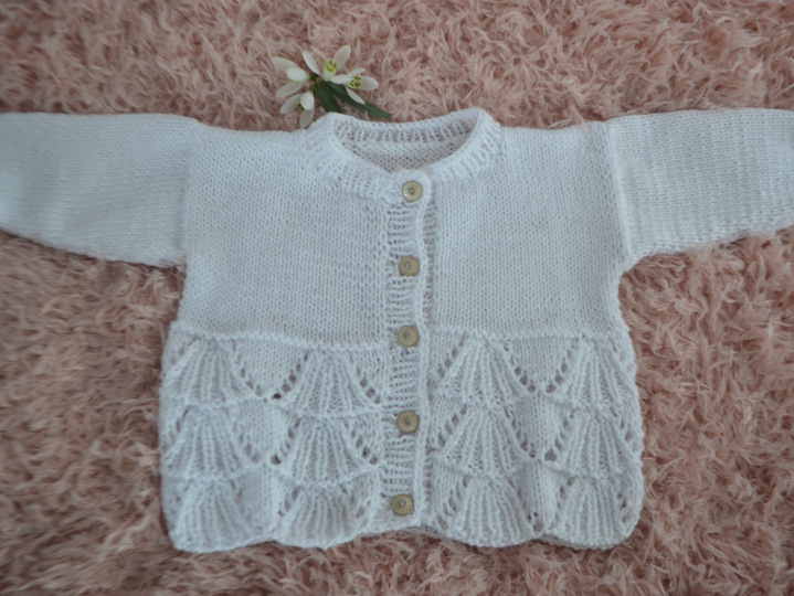 Eine niedliche, elegante Jacke für Mädchen aus feinem Alpaka Garn - perfekt also für die ersten großen Auftritte bei den Liebsten. Klassisch geschnitten mit einem Fächermusterspitze passt es in den Alltag und zu festlichen Anlässen.