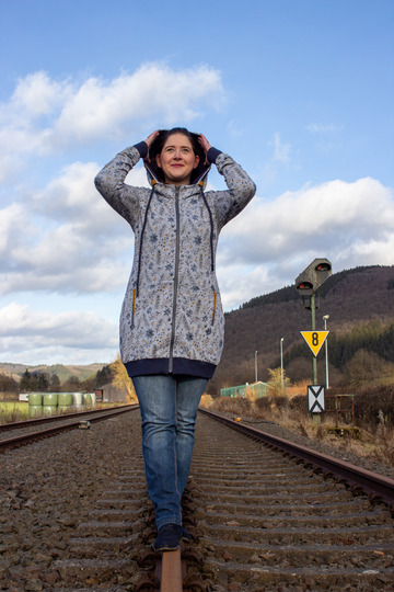 Der Winter nähert sich dem Ende, die Sonne gewinnt an Kraft, die Luft trägt ein wenig Wärme in unsere Gefilde. Zeit um sich eine schöne Übergangsjacke zu nähen, die auch für sommerliche Abende geeignet ist. Denn seien wir mal ehrlich, die sehnen wir uns nun langsam alle wieder herbei. Aufwind gen Süden ist eine Sweatjacke mit vielen Details, die du sportlich oder schick nähen kannst, ganz nach Geschmack, Anlass und Stimmung.