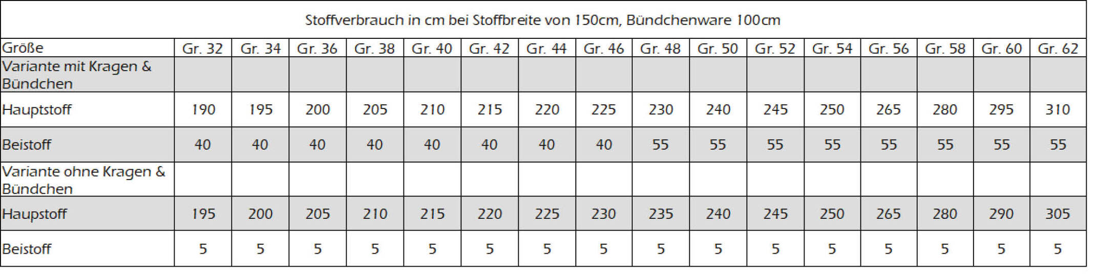 Im Schnittmuster enthalten sind die Damengrößen 32 - 62.