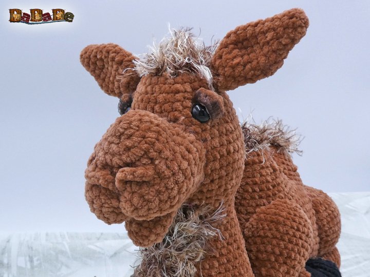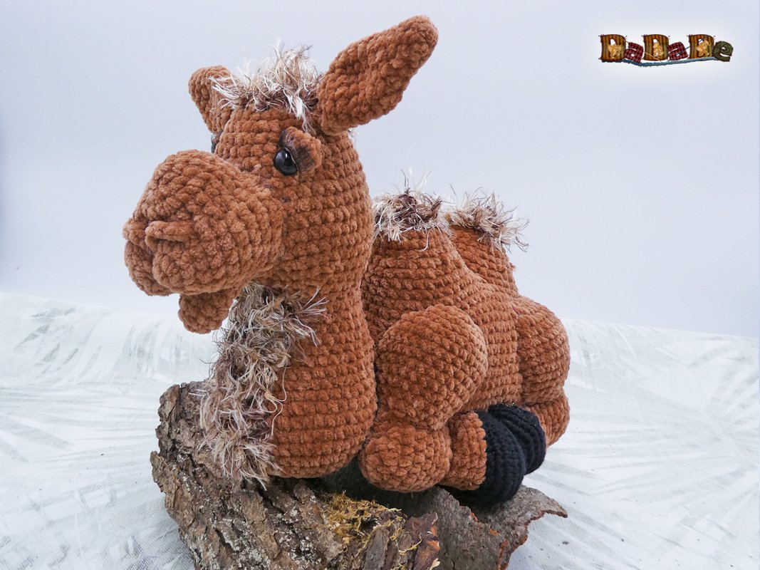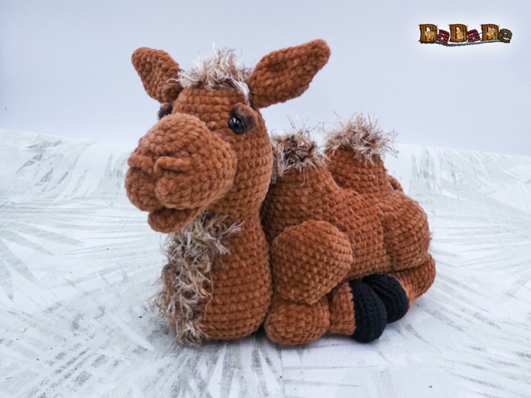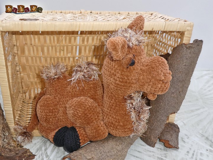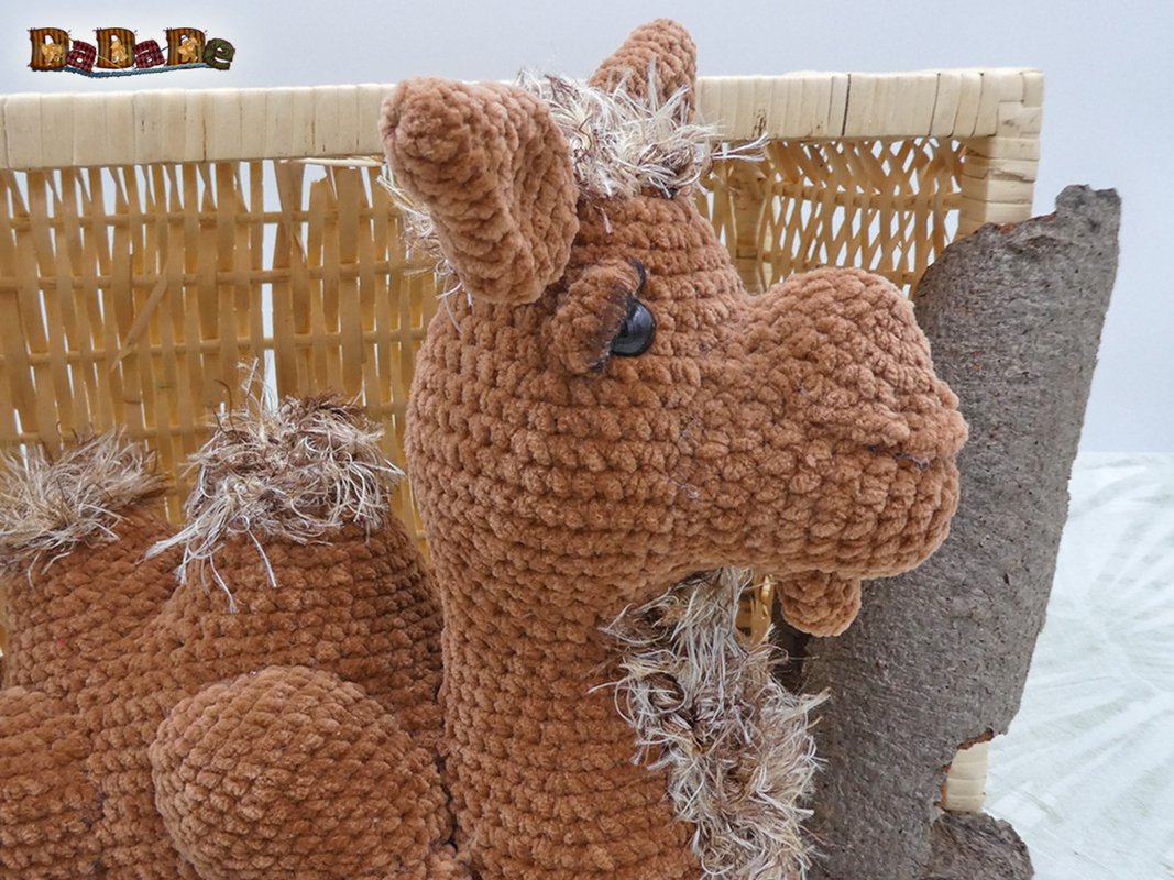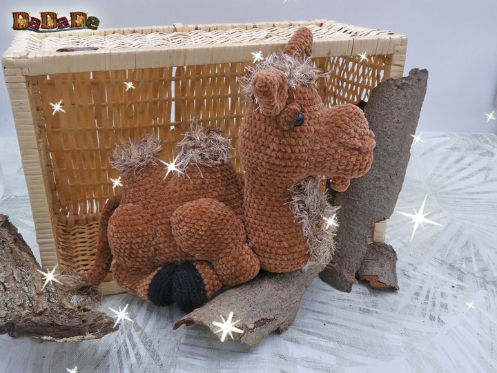 Mit Chenille-Wolle der Nadelstärke 3 gehäkelt, wird das Kamel ungefähr;