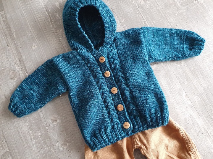 Baby-Kapuzenjacke mit Zopfmuster – Klassisch, zeitlos & mit Liebe gestrickt!