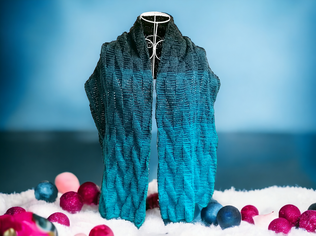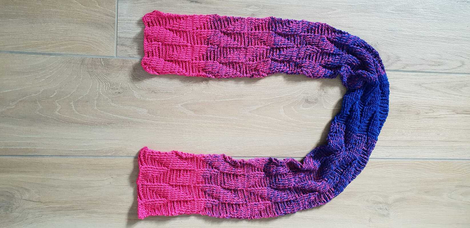 Die Anleitung ist 12 Seiten lang und jede einzelne Reihe ist in Wort und Bild beschrieben. Es sollte also keine Schwierigkeiten bereiten, diesen außergewöhnlichen Schal nachzuhäkeln.
