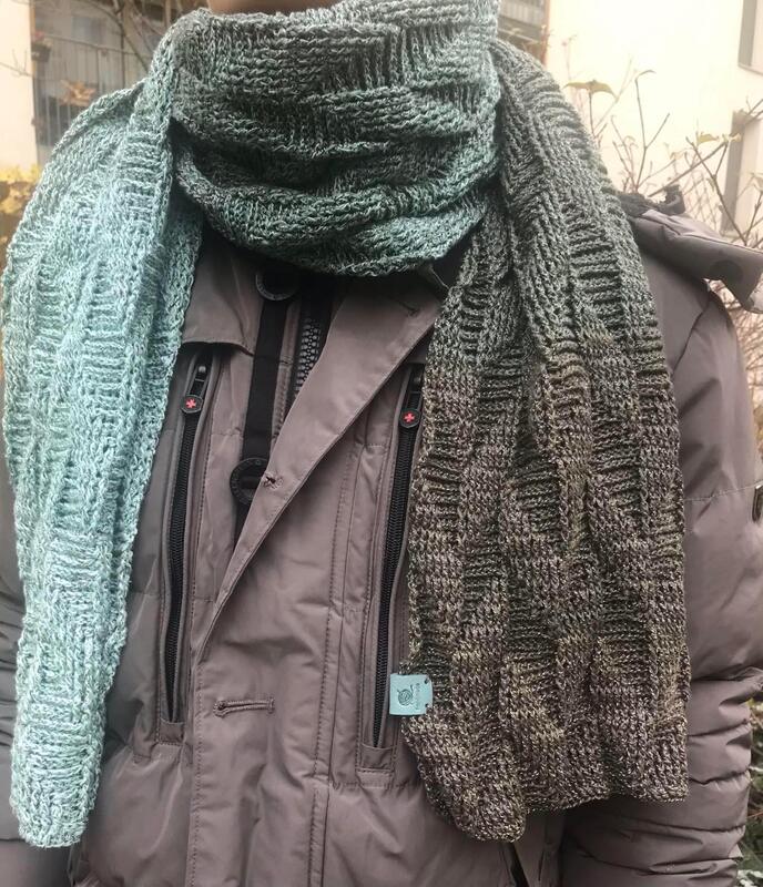 Ich denke, dass dieser Schal mit jeder anderen Wolle/jedem anderen Bobbel in den eigenen Lieblingsfarben toll wird. Ich habe den Schal für meinen Mann gehäkelt und folgende Materialien benötigt: