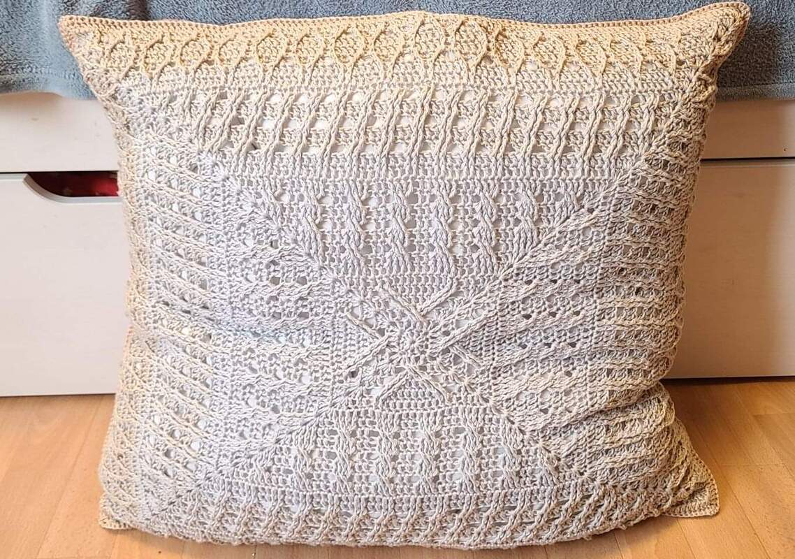 Bei dem vorgestellten Produkt handelt es sich nicht um das fertige Kissen, sondern um eine Häkelanleitung im PDF Format