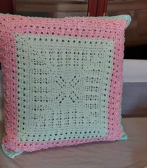 Das Kissen kann in beliebiger Größe gehäkelt werden.