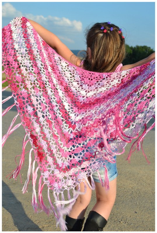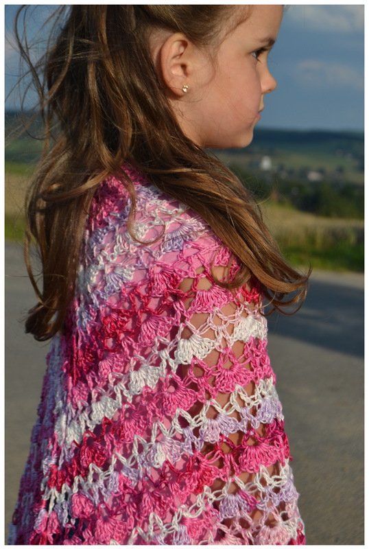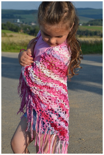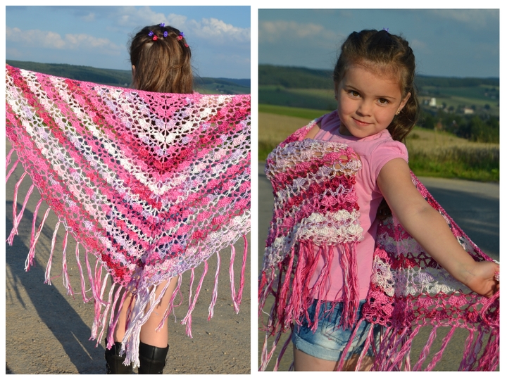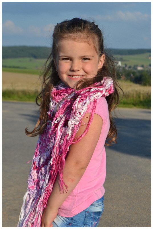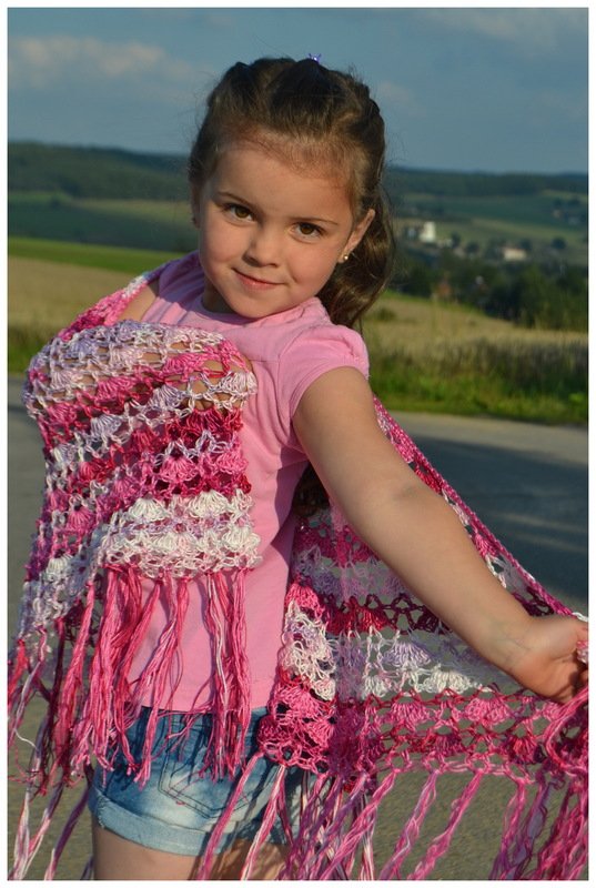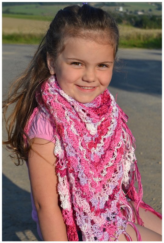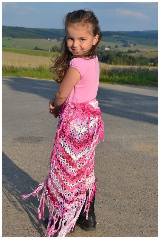 Das Tuch kannst du gern an jede Größe für jede Alter anpassen, egal ob als Halstuch oder als große Stola.