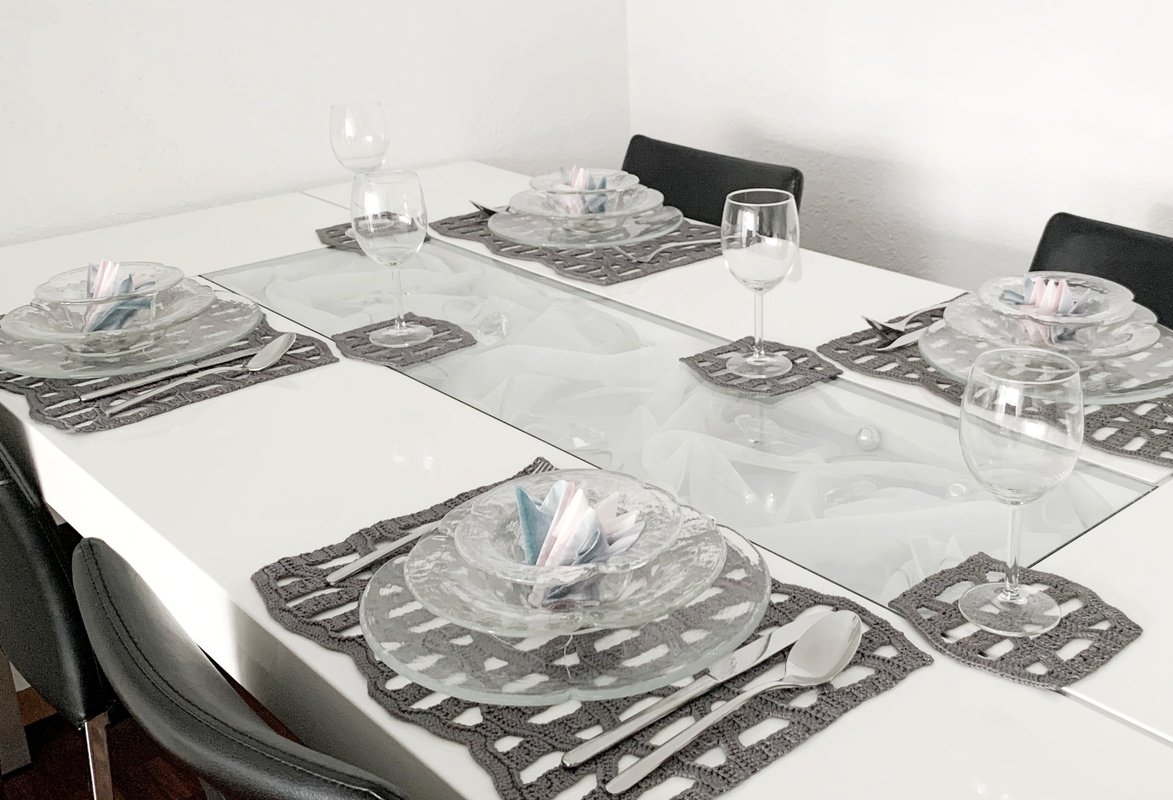 Net, kann als Tischläufer, dekoratives Deckchen, Tischset, Schal, Untersetzer und für viele andere Zwecke verwendet werden.