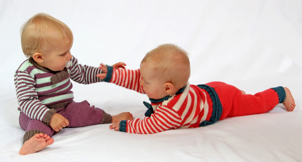 Dieses Outfit hat es unserer Marlene besonders angetan - was Du unschwer auf den vielen Bildern erkennen wirst. Er ist superbequem, stört keineswegs bei Krabbelversuchen und sieht einfach umwerfend aus. Die Hose ist ganz einfach zu machen, allerdings solltest Du für den Pullover schon etwas Strickerfahrung mitbringen.