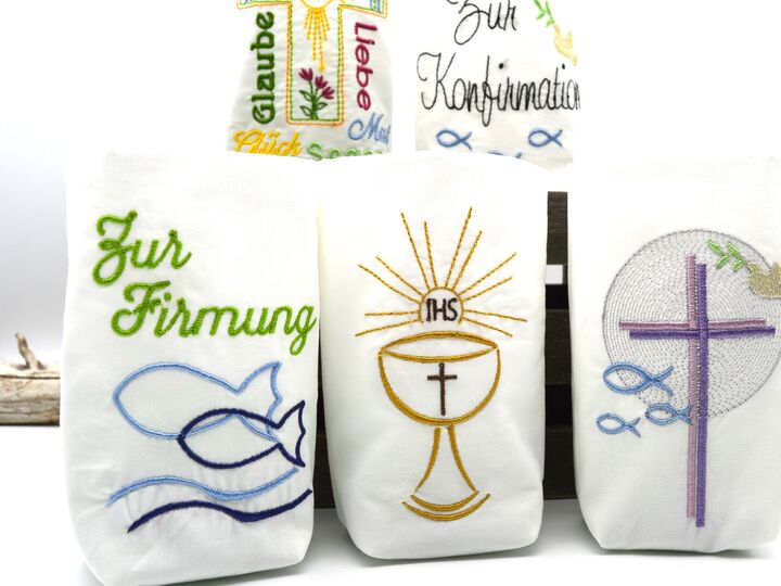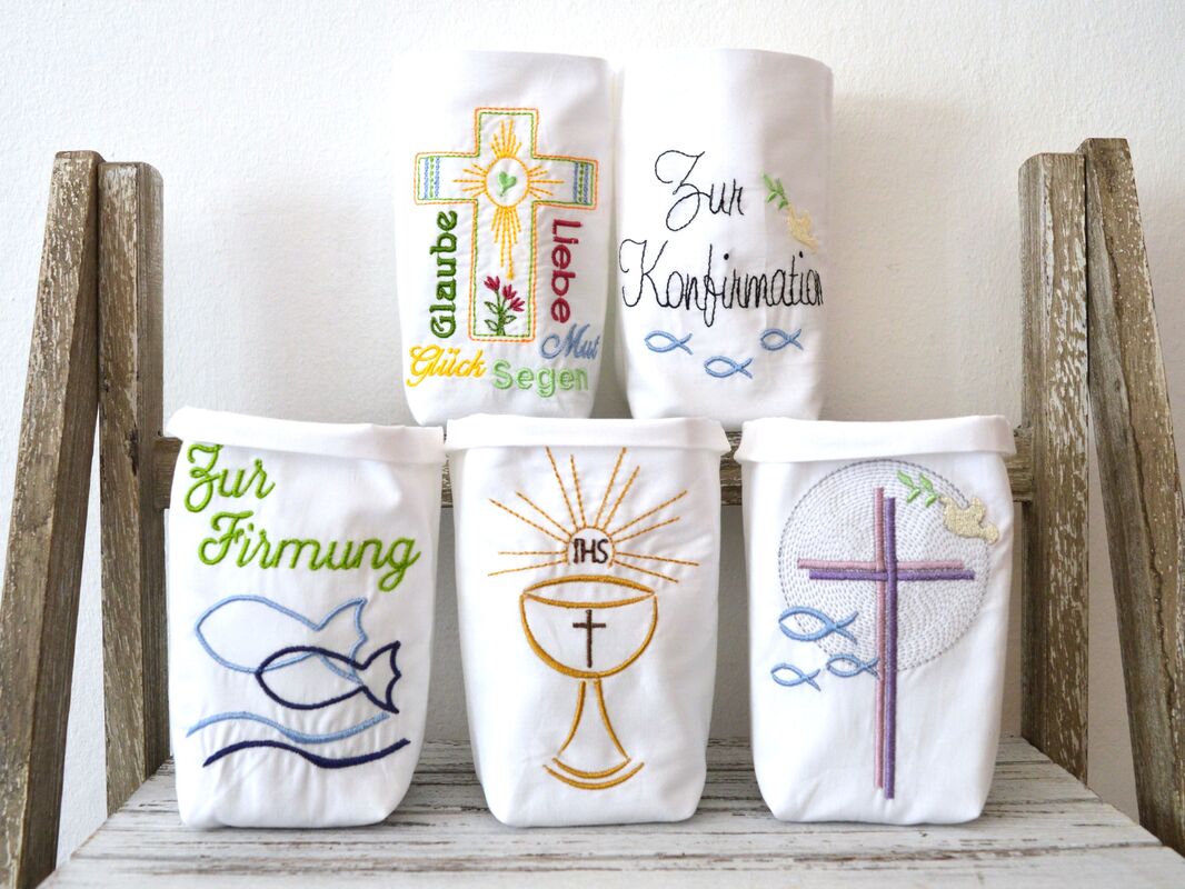 Lichterbeutel Stickdatei zur Firmung oder Konfirmation,