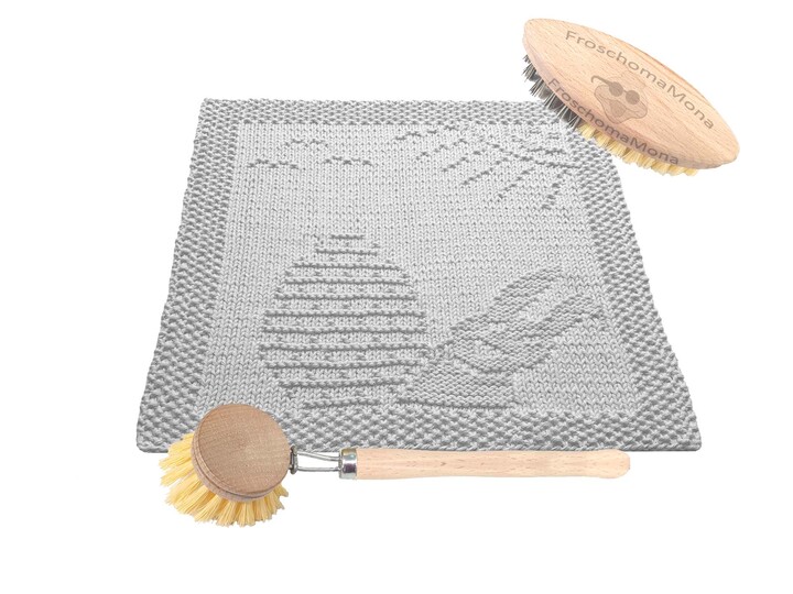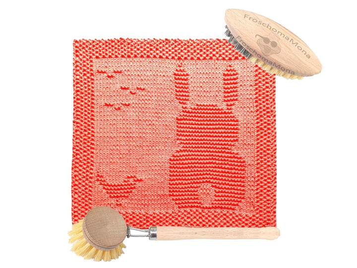 Mit doppeltem Faden gearbeitet, werden die Tücher ebenfalls dicker und größer und können als Topflappen benutzt werden.