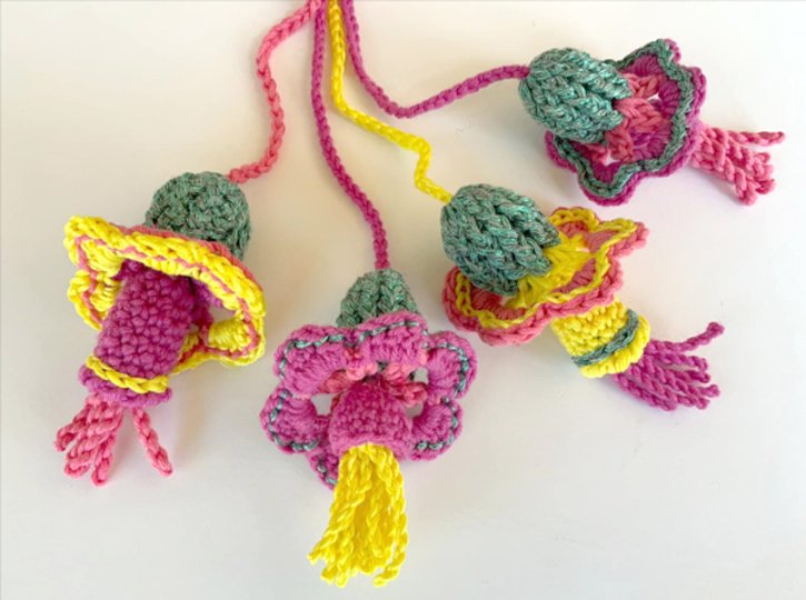 Man kann natürlich jede andere Wolle mit einer ähnlichen Lauflänge benutzen… Auch viele Farbkombinationen sind bei Fantasieblume möglich! Ich wünsche viel Vergnügen beim Kreativ sein!