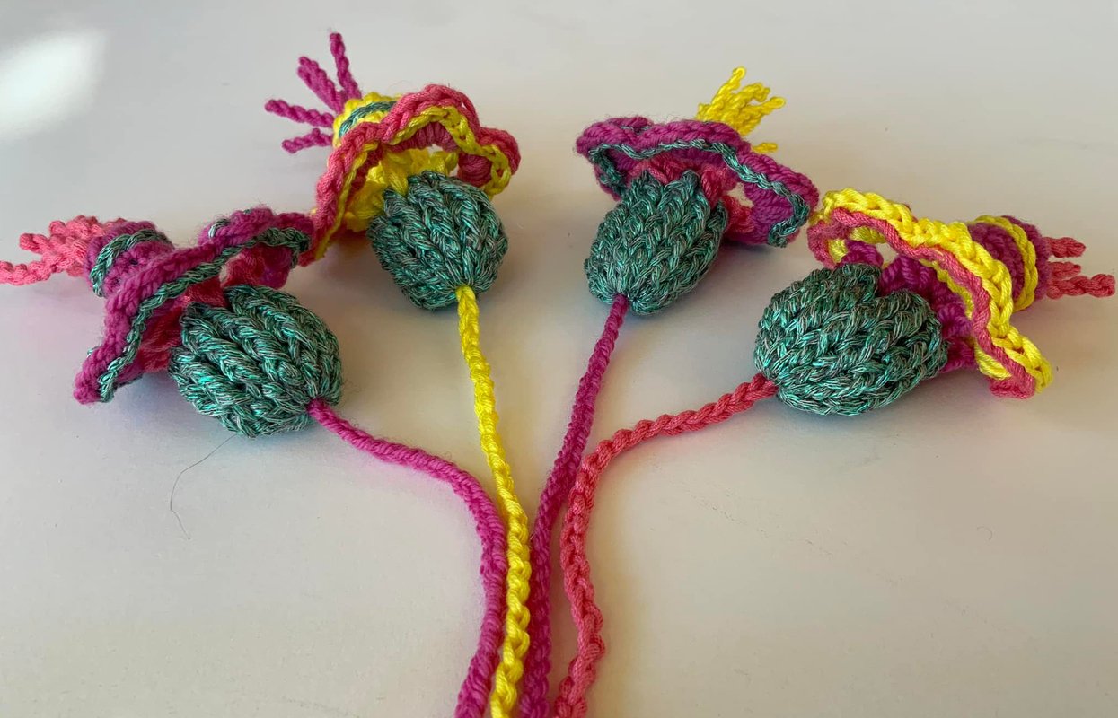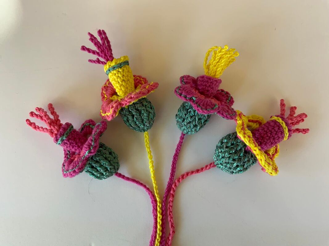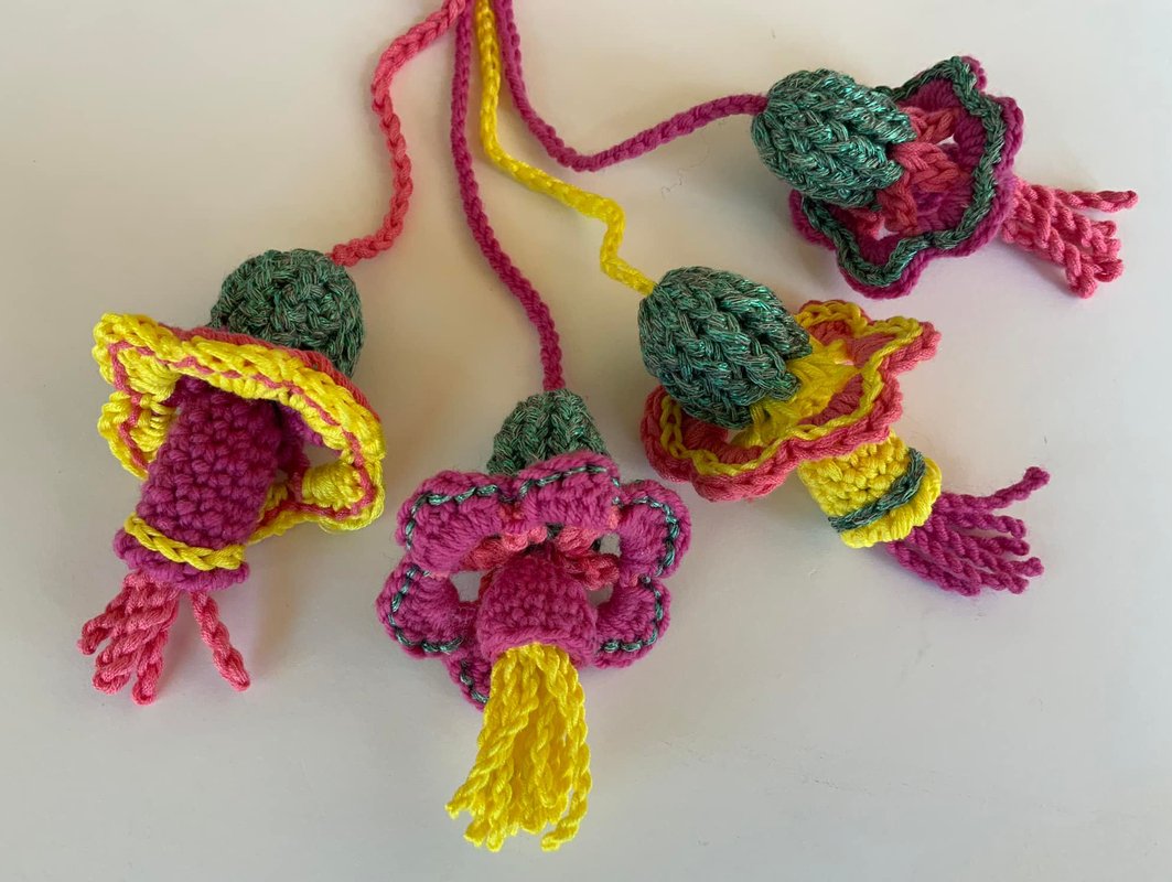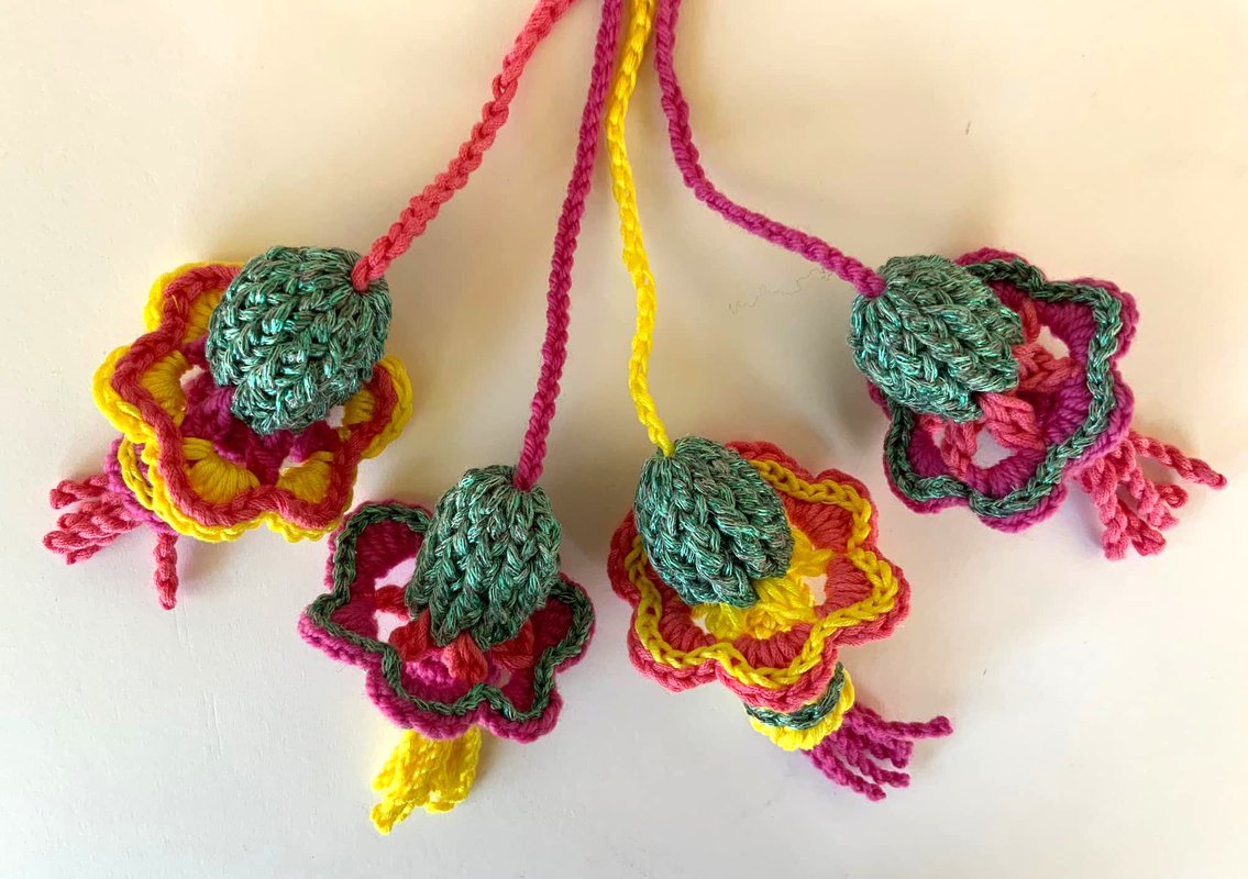 Die lustige Fantasieblume..vielseitig einsetzbar ..einfach so als kleiner Anhänger ..als Endstück für ein Tuch...oder auch nur an einen Zweig hängen + in die Blumenvase stellen, Schlüsselanhänger...uvm....